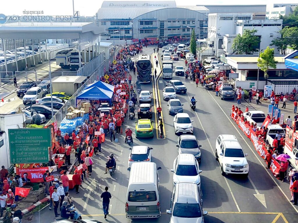 ต่อมาในเวลา 07.40 น. เจ้าหน้าที่ได้ให้มวลชนเสื้อแดงส่วนหนึ่ง เข้ามายังจุดคัดกรองแรกก่อนเข้าพื้นที่ด้านในอาคาร MJETS