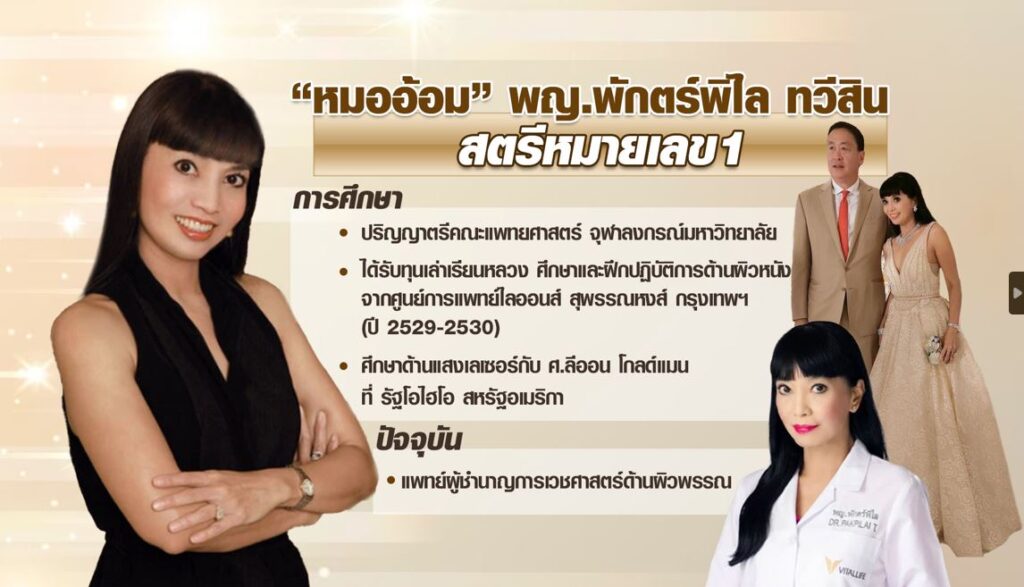 ไฟสปอทไลท์ส่องมาที่ “หมออ้อม” พญ.พักตร์พิไล ทวีสิน สตรีหมายเลข 1 ที่เป็นคู่ชีวิตของนายกรัฐมนตรีคนใหม่ทันที โดย “หมออ้อม” เป็นแพทย์ผู้ชำนาญการเวชศาสตร์ชะลอวัย และความงามด้านผิวพรรณ ที่ศูนย์ส่งเสริมสุขภาพไวทัลไลฟ์ จบปริญญาตรีคณะแพทยศาสตร์ จุฬาลงกรณ์มหาวิทยาลัย จากนั้นได้รับทุนเล่าเรียนหลวง ศึกษาและฝึกปฏิบัติการด้านผิวหนังจากศูนย์การแพทย์ไลออนส์ สุพรรณหงส์ กรุงเทพฯ (ปี 2529-2530) ศึกษาและฝึกปฏิบัติด้านแสงเลเซอร์กับศาสตราจารย์ลีออน โกลด์แมน ผู้ได้ฉายาว่า บิดาแห่งเลเซอร์ ที่เมืองซินซินเนติ รัฐโอไฮโอ สหรัฐอเมริกา