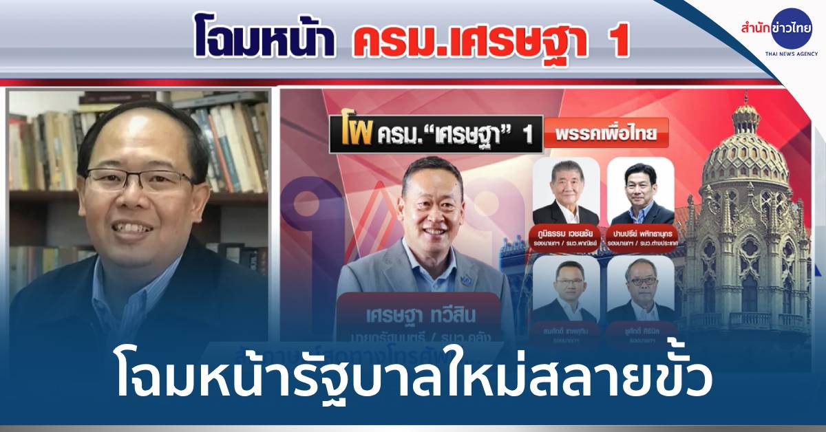 กทม. 27 ส.ค.- จับสัญญาณรัฐบาลเศรษฐา 1 ทั้งภายในพรรคเพื่อไทย และพรรคร่วมรัฐบาล ขณะนี้ตำแหน่งเกือบทุกกระทรวงลงตัว เริ่มนิ่งแล้ว และจะนำรายชื่อตรวจสอบคุณสมบัติกับทางเลขาฯ ครม . ก่อนนำรายชื่อขึ้นทูลเกล้าฯ ถวายสัปดาห์หน้า รัฐบาลที่จะเกิดขึ้น เป็นรัฐบาลข้ามขั้ว มีการพูดถึงการสลายความขัดแย้งเดิม แล้วรัฐบาลใหม่จะอยู่ได้ยาวแค่ไหน ไปฟังการวิเคราะห์จาก รศ.ดร.ยุทธพรอิสรชัย อาจารย์คณะรัฐศาสตร์ มหาวิทยาลัยสุโขทัยธรรมาธิราช.–สำนักข่าวไทย