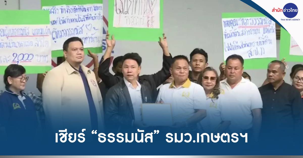 นายไผ่ ลิกค์ และนายอรรถกร ศิริลัทธยากร กรรมการบริหารพรรคพลังประชารัฐ รับหนังสือจากกลุ่มเกษตรกรและได้เปิดรับฟังปัญหาเชิงลึก จากกลุ่มเกษตรกร โดยนายยศวัจน์ ชัยวัฒนสิริกุล ที่ปรึกษาสหพันธ์เกษตรกรแห่งประเทศไทย กล่าวแสดงเจตนารมย์และจุดยืนของชาวเกษตรกร เพื่อมาให้กำลังใจ พร้อมมองว่าร.อ.ธรรมนัส พรหมเผ่า เลขาธิการพรรคพลังประชารัฐ เหมาะสมที่จะได้เป็นรัฐมนตรีว่าการกระทรวงเกษตรและสหกรณ์ เพราะที่ผ่านมาเป็นรัฐมนตรีช่วยว่าการกระทรวงเกษตรฯ ก็ทำหน้าที่ได้ดีและเชื่อมั่น แม้อาจจะยังทำงานไม่เต็มที่ และขอยืนยันไม่ควรให้ตำแหน่งนี้ไปอยู่พรรคอื่น ไม่เว้นแต่พรรคเพื่อไทย จะเปลี่ยนตัวรัฐมนตรีให้พรรคอื่นไม่ได้ หากได้มานั่งในตำแหน่งรัฐมนตรีก็จะทำงานได้อย่างมีประสิทธิภาพมากยิ่งขึ้น