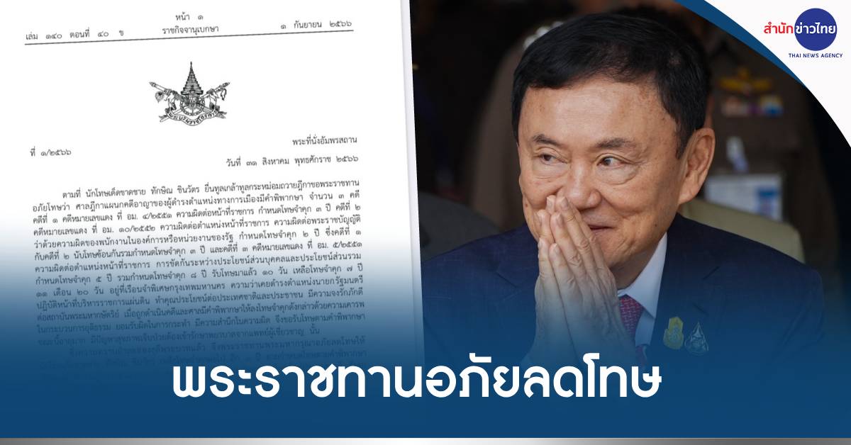 กทม. 1 ก.ย.-พระราชทานอภัยลดโทษ “ทักษิณ ชินวัตร” เหลือจำคุกอีก 1 ปี