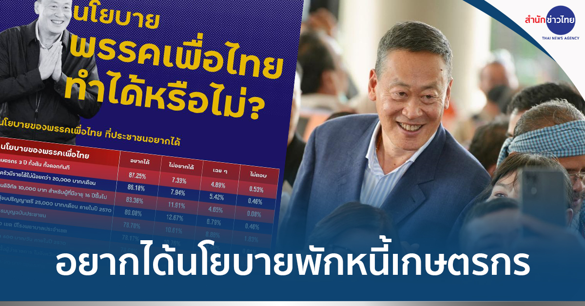 จากการสำรวจเมื่อถามประชาชนเกี่ยวกับนโยบายของพรรคเพื่อไทยที่ประชาชนอยากได้ พบว่า