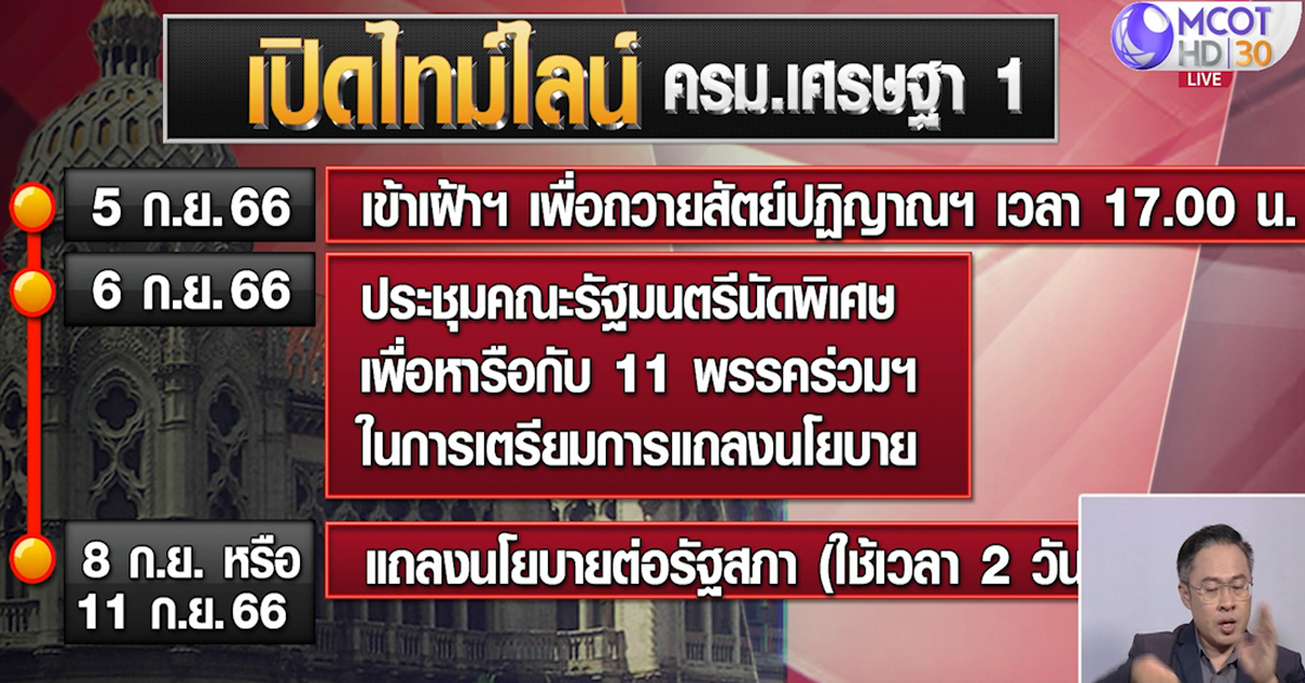 3 ก.ย.-5 ก.ย.นี้ “เศรษฐา” นายกรัฐมตรี นำ ครม.เข้าเฝ้าฯ ถวายสัตย์ปฏิญาณฯ ยัน “พิชิต ชื่นบาน-ไผ่ ลิกค์” โควตายังอยู่ ไม่กำหนดระยะเวลา