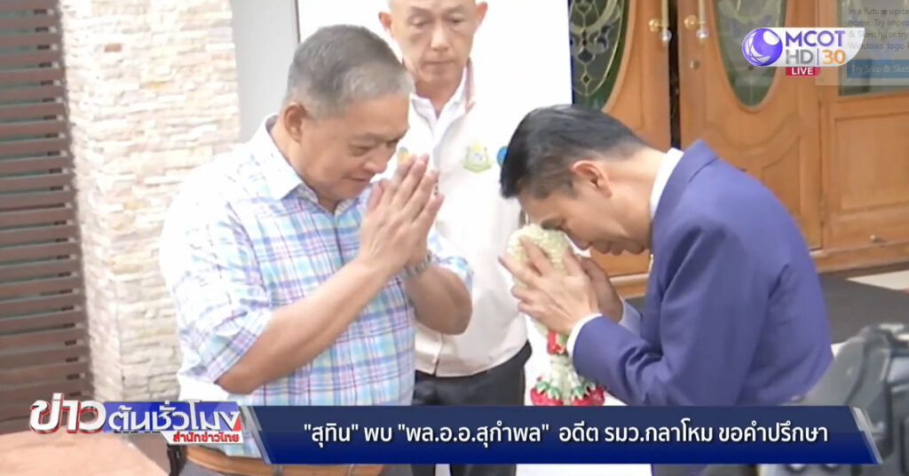 กทม. 4 ก.ย.-“สุทิน” รมว.กลาโหม เข้าพบ พล.อ.อ.สุกำพล อดีต รมว.กลาโหม ที่บ้านพักส่วนตัว เพื่อขอคำแนะนำในการทำงาน