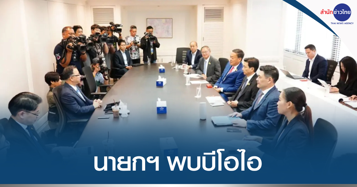 เพื่อไทย 7 ก.ย.-นายกฯ พบบีโอไอ หารือเร่งผลักดันส่งเสริมการลงทุนจากต่างประเทศ ยืนยันจะผลักดันโครงการที่มีประโยชน์ต่อประเทศภาพรวม ให้เกิดการลงทุนอย่างต่อเนื่อง
