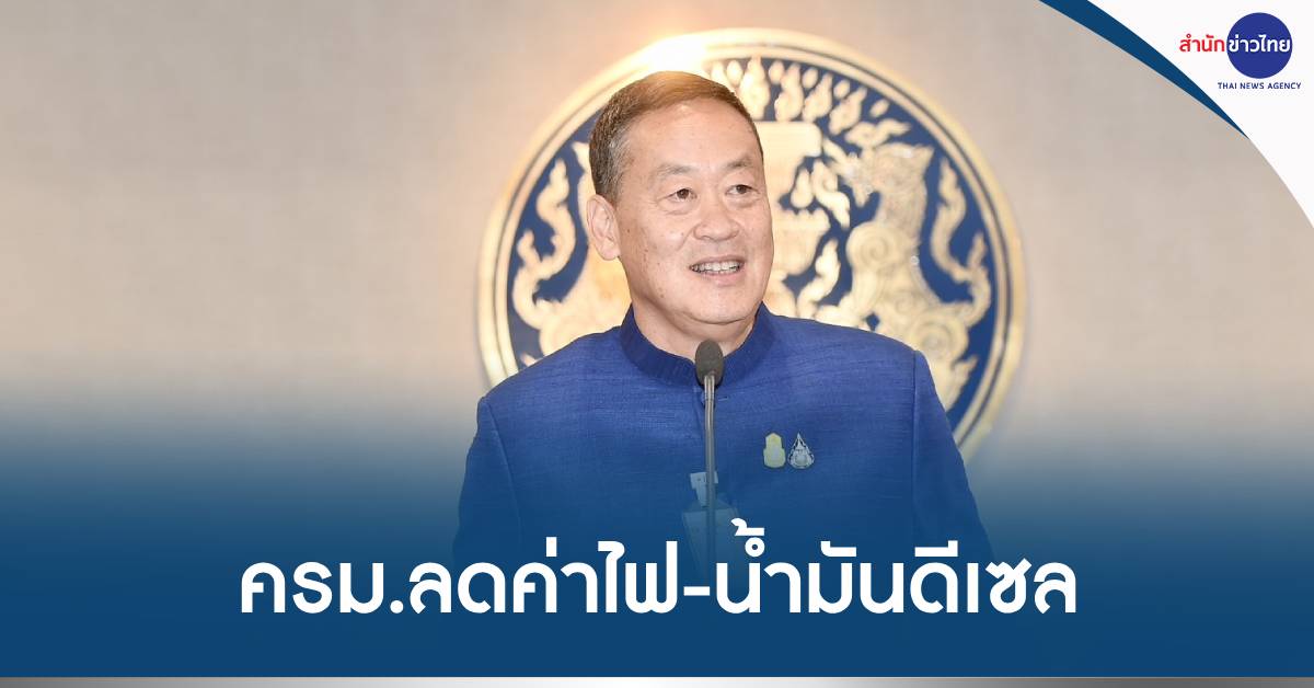 ทำเนียบรัฐบาล 13 ก.ย.- นายกฯ เผย ครม.ลดค่าไฟเหลือ 4.10 บาท น้ำมันดีเซลต่ำกว่า 30 บาทต่อลิตร มีผลเดือนนี้ ปรับจ่ายเงินเดือนข้าราชการเดือนละ 2 รอบ พร้อมวีซ่าฟรีให้จีน-คาซัคสถาน ตั้ง “ภูมิธรรม” นั่งประธานศึกษาแก้ รธน.-ทำประชามติ