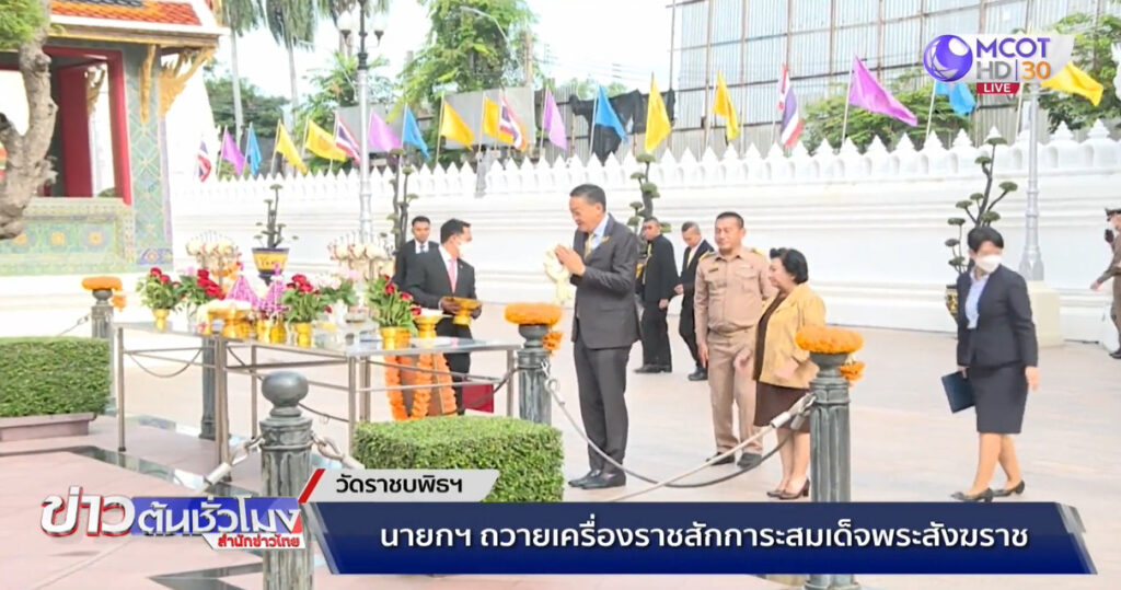 นายเศรษฐา ทวีสิน นายกรัฐมนตรีและ รมว.คลัง เข้าเฝ้าฯ สมเด็จพระอริยวงศาคตญาณ สมเด็จพระสังฆราช สกลมหาสังฆปริณายก ที่วัดราชบพิธสถิตมหาสีมาราม เพื่อถวายเครื่องสักการะ เปิดกรวยกระทงดอกไม้ถวายธูปเทียนแพ พานดอกบัว ผ้าไตรและเครื่องไทยธรรม ซึ่งสมเด็จพระสังฆราช ทรงมีพระดำรัส ก่อนที่นายกรัฐมนตรี จะกราบทูลลา