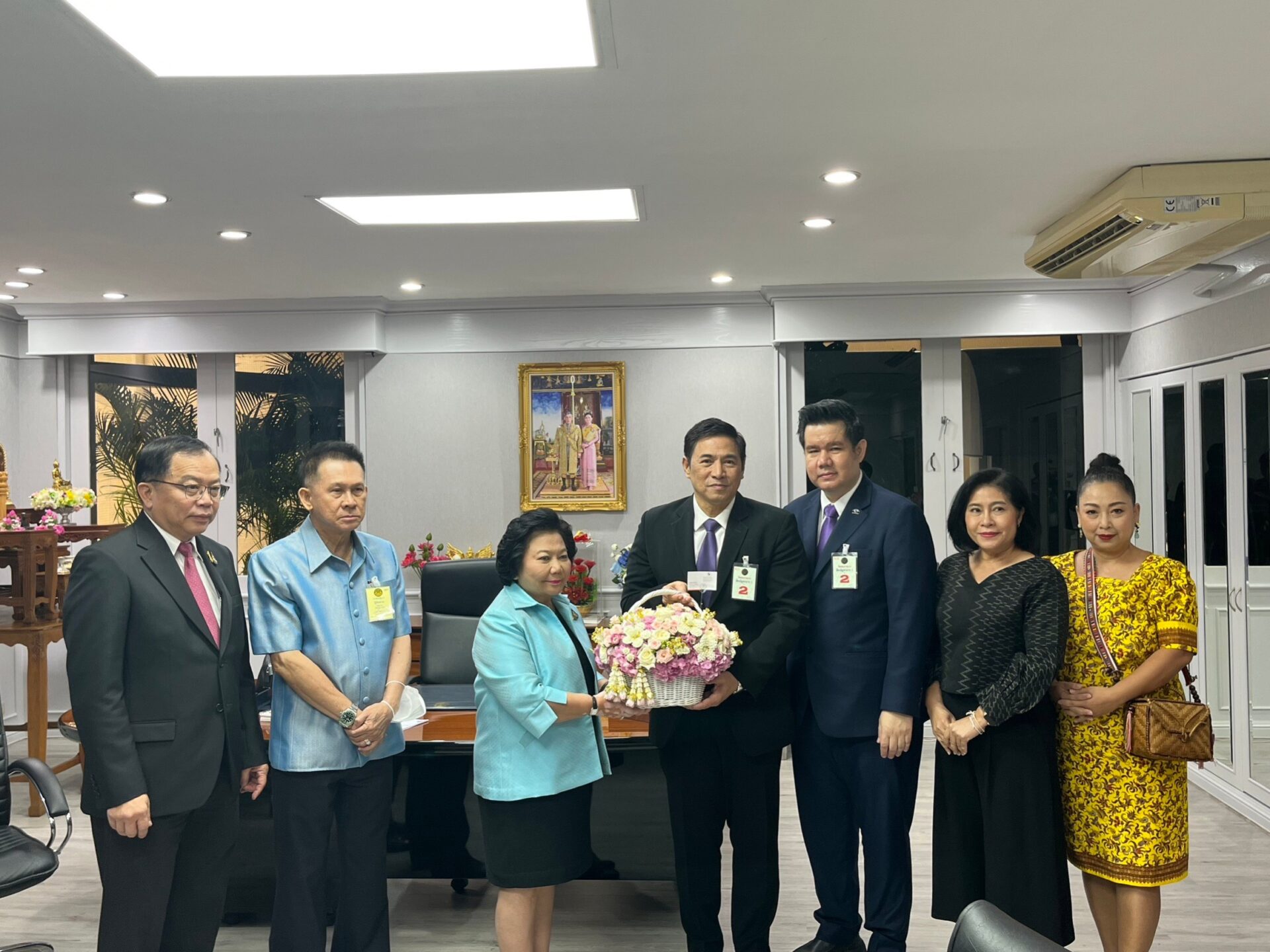 นายผาติยุทธ ใจสว่าง รองกรรมการผู้อำนวยการใหญ่ สายงานผลิตภัณฑ์ รักษาการในตำแหน่งกรรมการผู้อำนวยการใหญ่ บริษัท อสมท จำกัด (มหาชน) พร้อมด้วยคณะผู้บริหาร เข้าพบ นางพวงเพ็ชร ชุนละเอียด รัฐมนตรีประจำสำนักนายกรัฐมนตรี ซึ่งกำกับดูแล บมจ.อสมท พร้อมมอบกระเช้าดอกไม้แสดงความยินดีในโอกาสเข้ารับตำแหน่งรัฐมนตรีประจำสำนักนายกรัฐมนตรี