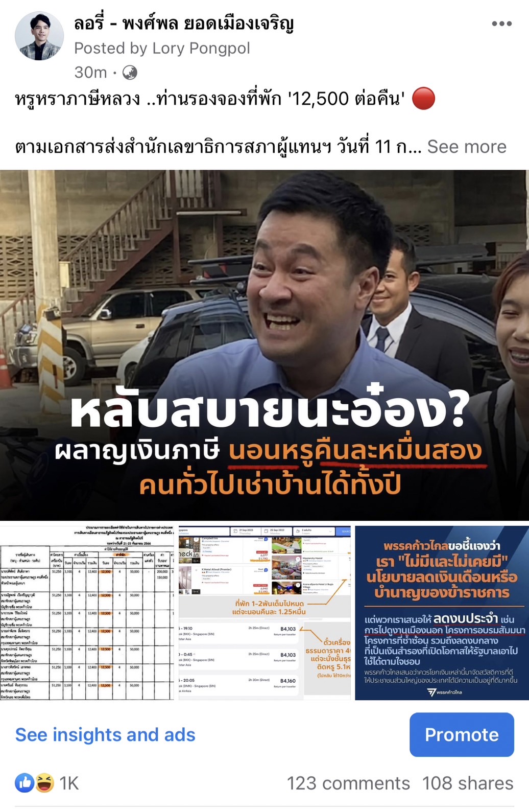 พรรครวมไทยสร้างชาติ 18 ก.ย.-รองโฆษกพรรครวมไทยสร้างชาติโพสต์เฟซบุ๊กตั้งข้อสังเกต “ปดิพัทธ์พร้อมคณะ” เบิกงบดูงานสิงคโปร์ราคาสูงเกินจริง
