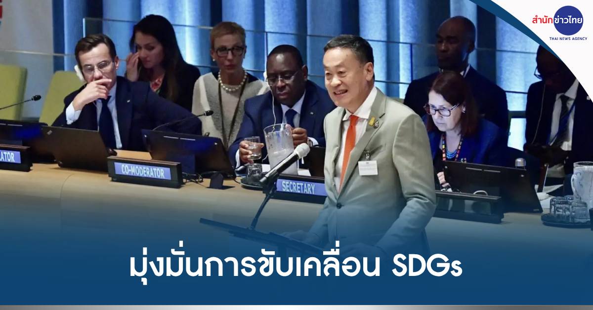 เมื่อเวลา 17.00 น. ตามเวลาท้องถิ่นสหรัฐฯ ของวันที่19 กันยายน ณ Trusteeship Council Chamber สำนักงานใหญ่สหประชาชาติ นครนิวยอร์ก นายเศรษฐา ทวีสิน นายกรัฐมนตรีและรัฐมนตรีว่าการกระทรวงการคลัง กล่าวถ้อยแถลงในการประชุมระดับผู้นำว่าด้วยเป้าหมายการพัฒนาที่ยั่งยืนประจำปี ค.ศ. 2023 (Sustainable Development Goals (SDG) Summit 2023)