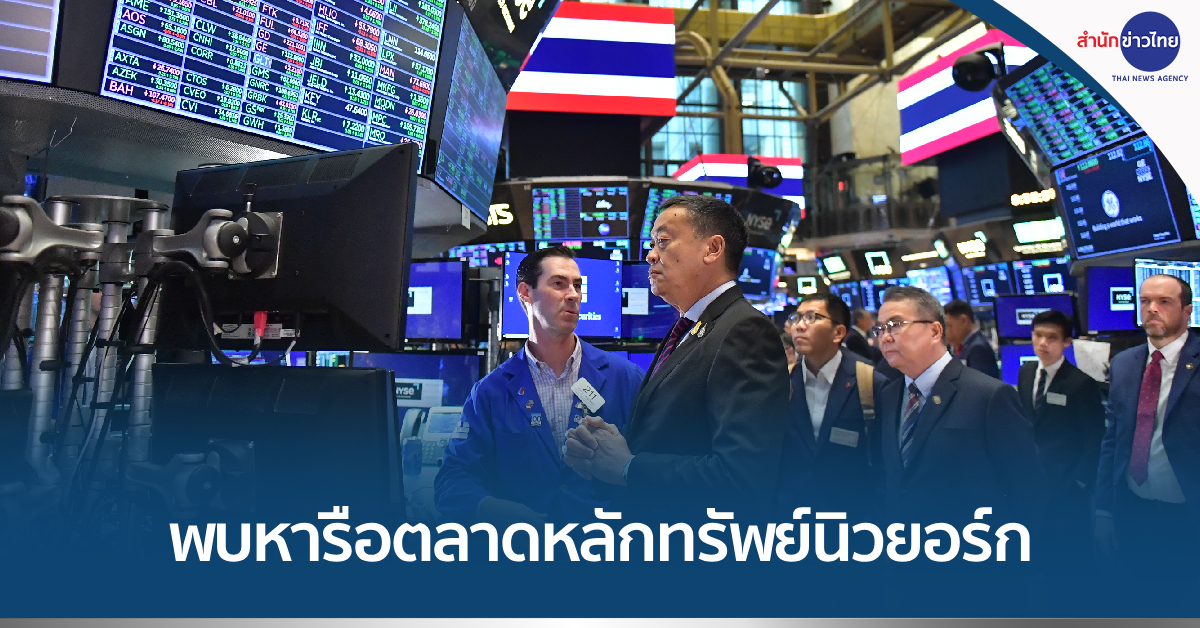 สหรัฐ 22 ก.ย. – นายกฯ พบหารือตลาดหลักทรัพย์นิวยอร์ก ย้ำนโยบายทางเศรษฐกิจของรัฐบาล พร้อมสนับสนุนเอกชนไทยเข้าถึงแหล่งเงินทุน แสวงหาโอกาสและใช้ประโยชน์จากศักยภาพของไทย เพิ่มความน่าสนใจให้ภูมิภาค