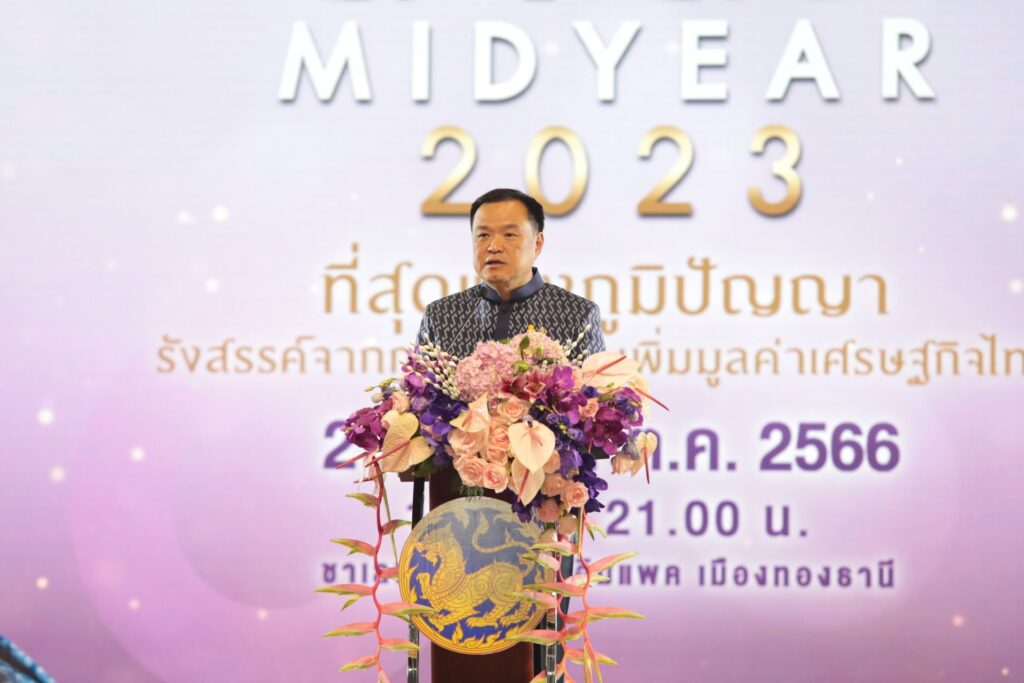 นายอนุทิน กล่าวว่า วันนี้ นายเศรษฐา ทวีสิน นายกรัฐมนตรี มอบหมายให้ตนเป็นประธานในพิธีเปิดงาน OTOP Midyear 2023 ซึ่งขอยืนยันว่า งานในวันนี้เป็นงานที่มีความหมายอย่างยิ่ง เป็นช่วงเวลาที่ประเทศไทยจะได้ผลักดันภูมิปัญญาวัฒนธรรม และความคิดสร้างสรรค์ ออกสู่สายตาชาวโลกให้กว้างไกลยิ่งกว่าเดิม