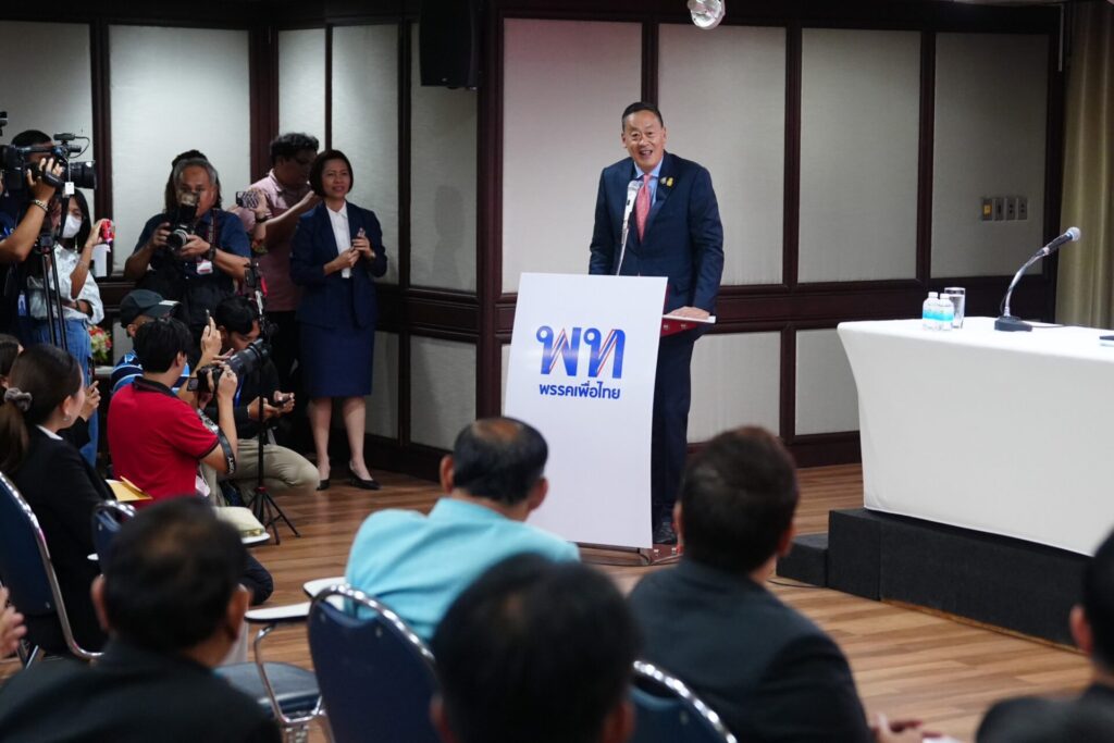 เมื่อเวลา 16.30 น. พรรคเพื่อไทยมีการประชุม สส.พรรคประจำสัปดาห์ นำโดยนายชูศักดิ์ ศิรินิล รักษาการหัวหน้าพรรคเพื่อไทย นายภูมิธรรม เวชยชัย รักษาการรองหัวหน้าพรรค นายวิสุทธิ์ ไชยณรุณ ประธาน สส.พรรคเพื่อไทย นายอดิศร เพียงเกษ สส. บัญชีรายชื่อและ ประธานวิปรัฐบาล ทั้งนี้ นายเศรษฐา ทวีสิน นายกมนตรีและรัฐมนตรีว่าการกระทรวงการคลัง และ น.ส.แพทองธาร ชินวัตร หัวหน้าครอบครัวเพื่อไทย และรองประธานคณะกรรมการยุทธศาสตร์ซอฟท์พาวเวอร์แห่งชาติ เข้าร่วมประชุมด้วย