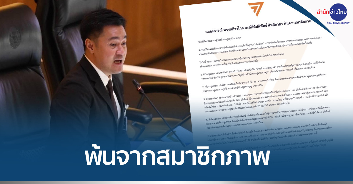 แถลงการณ์พรรคก้าวไกล กรณีให้ ปดิพัทธ์ สันติภาดา พ้นจากสมาชิกภาพ