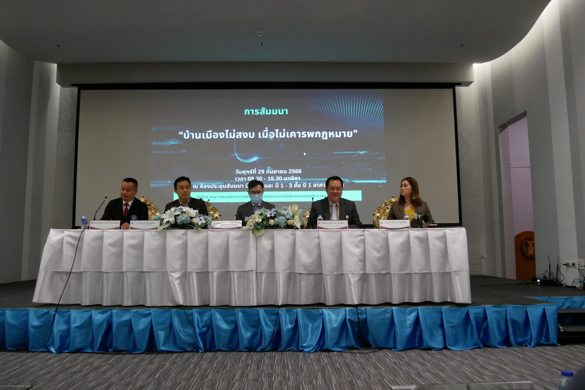 คณะกรรมาธิการการพัฒนาการเมืองและการมีส่วนร่วมของประชาชน วุฒิสภา จัดสัมมนาในหัวข้อ “บ้านเมืองไม่สงบ เมื่อไม่เคารพกฎหมาย” โดยมี พ.ต.อ.ทวี สอดส่อง รัฐมนตรีว่าการกระทรวงยุติธรรม นายพงษ์เดช วานิชกิตติกูล ผู้พิพากษาหัวหน้าคณะในศาลอุทธรณ์ภาค 1 นายน้ำแท้ มีบุญสล้าง ผู้อำนวยการสถาบันวิจัยเพื่อการพัฒนาการสอบสวนและการดำเนินคดี สำนักงานอัยการสูงสุด และ พ.ต.อ.รชตโชค ลีวาณิชคุณ ผกก.(สอบสวน) กองบังคับการตำรวจสืบสวนสอบสวนอาชญากรรมทางเทคโนโลยี 1 (บก.สอท.1) ร่วมการสัมมนา