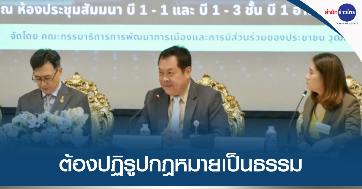 รัฐสภา 29 ก.ย.- กมธ.การพัฒนาการเมืองฯ วุฒิสภา จัดเวทีเสวนา “บ้านเมืองไม่สงบ เมื่อไม่เคารพกฎหมาย” รมว.ยุติธรรม ชี้บังคับใช้กฎหมายบางเรื่องต้องมองตามหลักความเป็นจริง ต้องปฏิรูปกฎหมายให้มีความเป็นธรรม