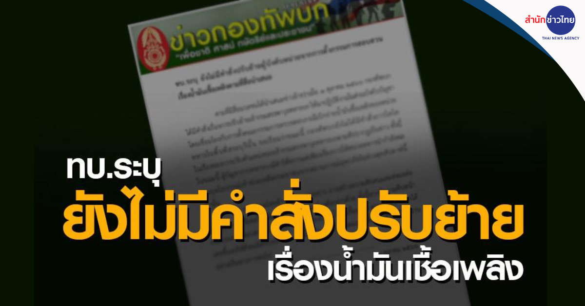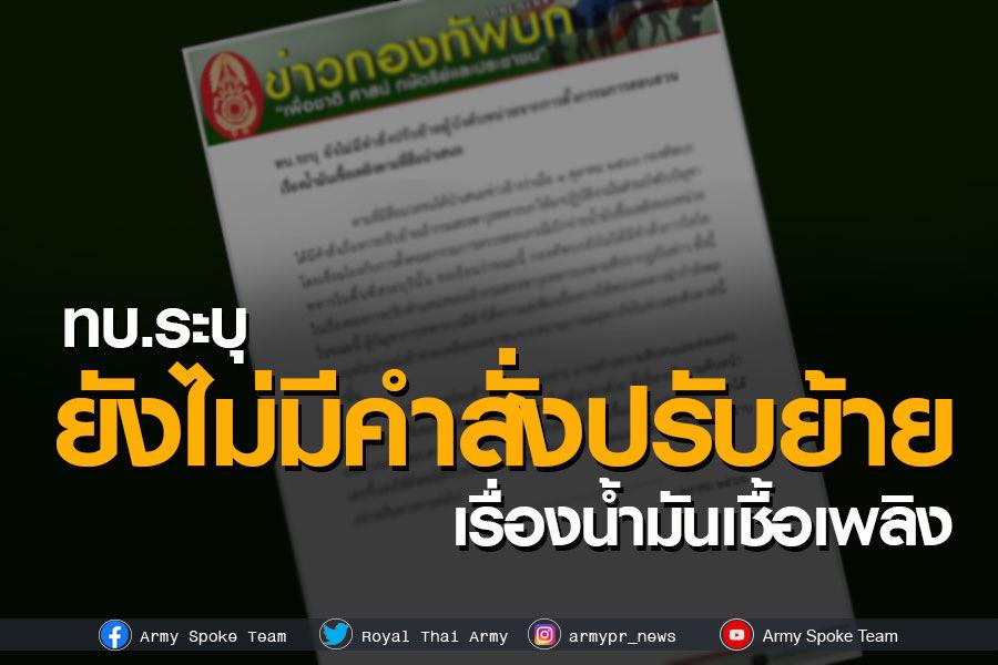 กรุงเทพฯ 1 ต.ค. – ทบ.ระบุยังไม่มีคำสั่งปรับย้ายผู้บังคับหน่วยจากการตั้งกรรมการสอบสวนเรื่องน้ำมันเชื้อเพลิง ตามที่สื่อนำเสนอ