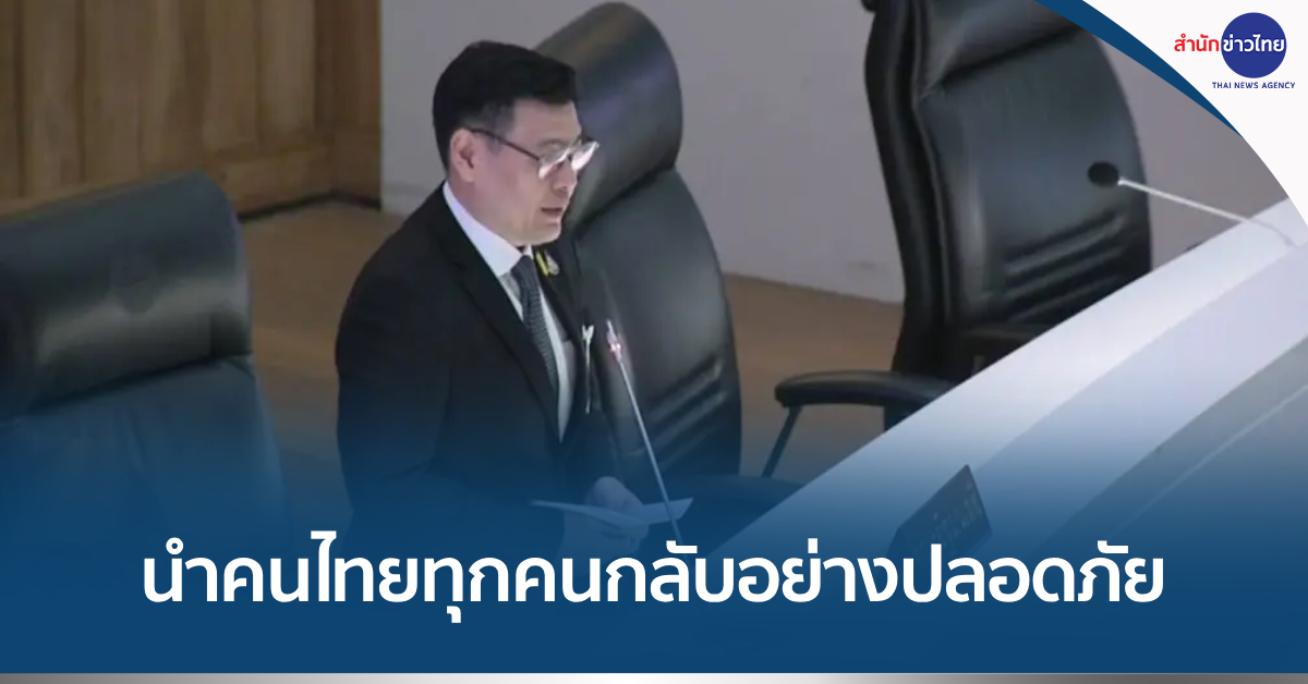รัฐมนตรีช่วยว่าการกระทรวงการต่างประเทศ กล่าวว่า รัฐบาลพร้อมรับข้อเสนอของสว. ที่แนะนำว่าให้พูดคุยเจรจากับทางอาเซียน รวมทั้งเพื่อนบ้านในแถบอิสราเอล เพราะรัฐบาลให้ความสำคัญกับนโยบายด้านการต่างประเทศ คำนึงถึงการลงทุนและการค้าในอนาคตด้วย ซึ่งเป็นหนึ่งในนโนบายหลักของนายกรัฐมนตรี ขอยืนยันในสภาฯ นี้ว่าจะดำเนินการทุกวิถีทาง ทุกหน่วยงานที่สามารถทำได้ในการพาคนไทยทุกคนกลับมา แม้จะมีถึง 30,000 คน เป็นจำนวนที่มาก แต่เราได้คุยกับทั้งทางกองทัพและภาคเอกชนเพื่อจะให้มีช่องทางพาคนไทยทุกคนกลับมา.-สำนักข่าวไทย