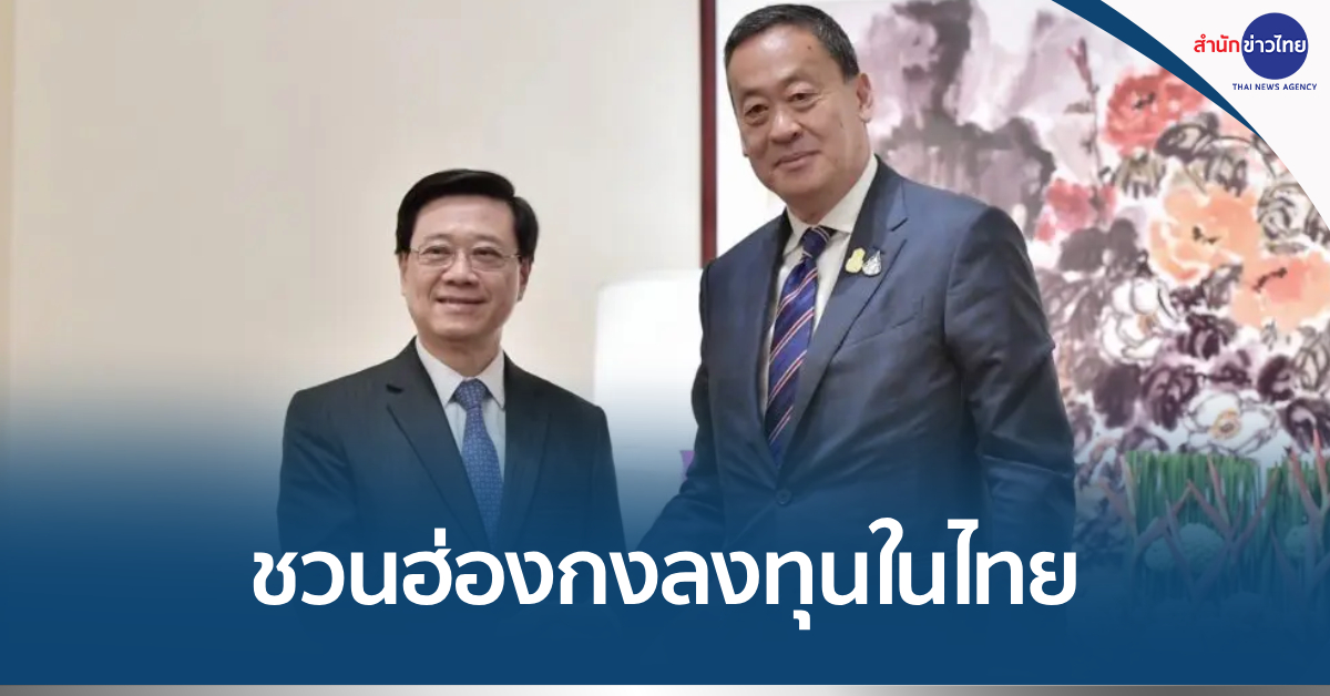 ทำเนียบผู้บริหารสูงสุดฮ่องกง 9 ต.ค. – นายกฯ หารือทวิภาคีผู้บริหารสูงสุดฮ่องกง เชิญชวนนักลงทุนฮ่องกงลงทุนในไทย ส่งเสริมความเชื่อมโยงยุทธศาสตร์ EEC กับ GBA