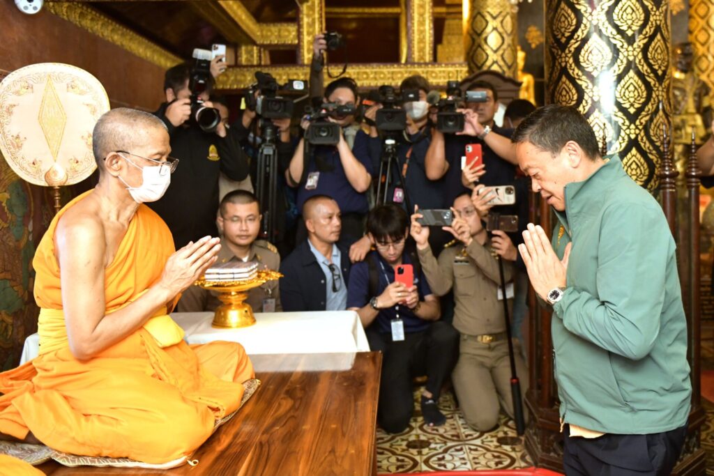 จากนั้นเวลา 09.52 น. นายกฯ และคณะเดินทางถึงวัดพระศรีรัตนมหาธาตุวรมหาวิหาร โดยได้สักการะพระพุทธชินราช พร้อมถวายสังฆทานพระสุธรรมมุนี (สมบูรณ์) รักษาการแทนเจ้าอาวาสวัดพระศรีรัตนมหาธาตุวรมหาวิหาร พระราชรัตนสุธี เจ้าคณะจังหวัดพิษณุโลก เพื่อความเป็นสิริมงคล ทั้งนี้พระสุธรรมมุนีได้มอบพระเครื่อง รุ่นสมโภช พระพุทธชินราชครบรอบ 666 ปีให้กับนายกฯ และคณะ