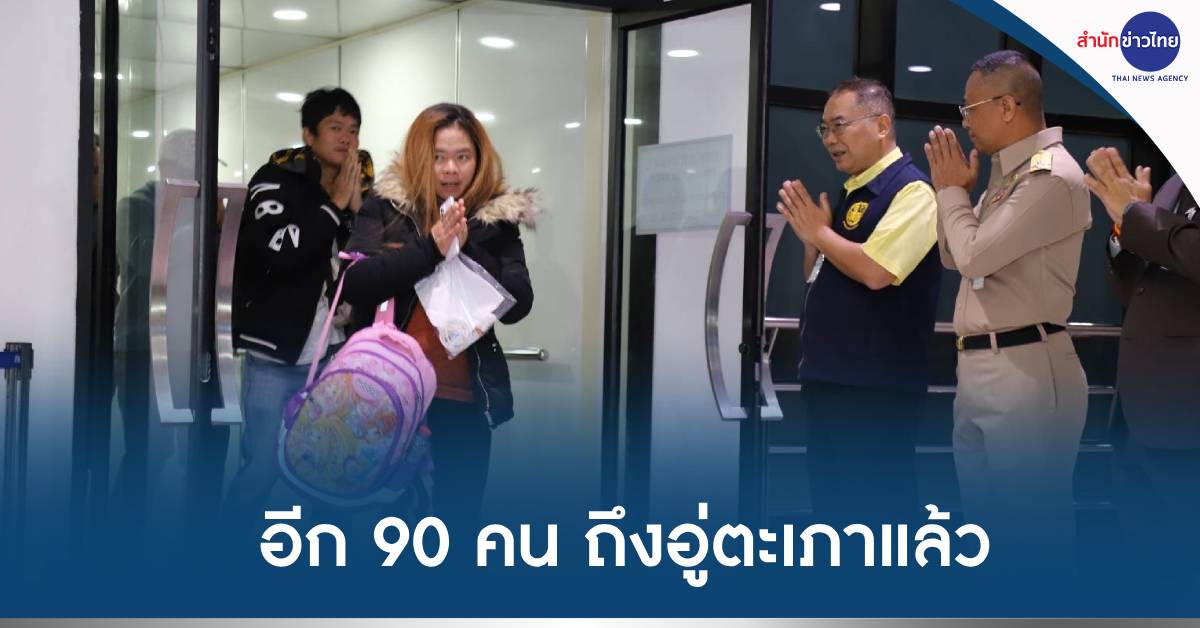 อู่ตะเภา 16 ต.ค.-คนไทยอีก 90 คนจากอิสราเอล ถึงสนามบินอู่ตะเภาแล้ว ด้วยสายการบิน Fly Dubai จากนั้นจะมีรถบัสนำไปพักผ่อนที่โรงแรมในกรุงเทพฯ เพื่อรอญาติรับกลับภูมิลำเนา