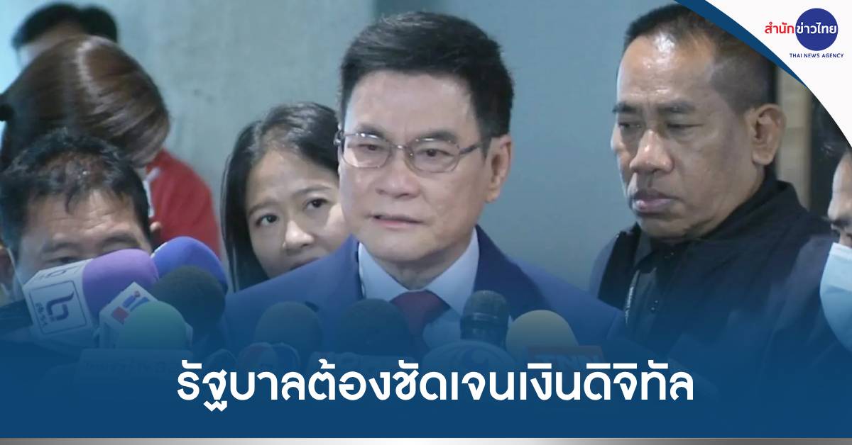 รัฐสภา 19 ต.ค. -“จุรินทร์” จี้ถามความชัดเจนนโยบายดิจิทัลวอลเล็ต ชี้เมื่อเป็นนโยบายหาเสียงต้องไม่คลุมเครือ ต้องรับผิดชอบ ถ้าเกิดความเสียหาย เตือนอย่าตำหนิคนวิจารณ์ คนไทยมีสิทธิรู้