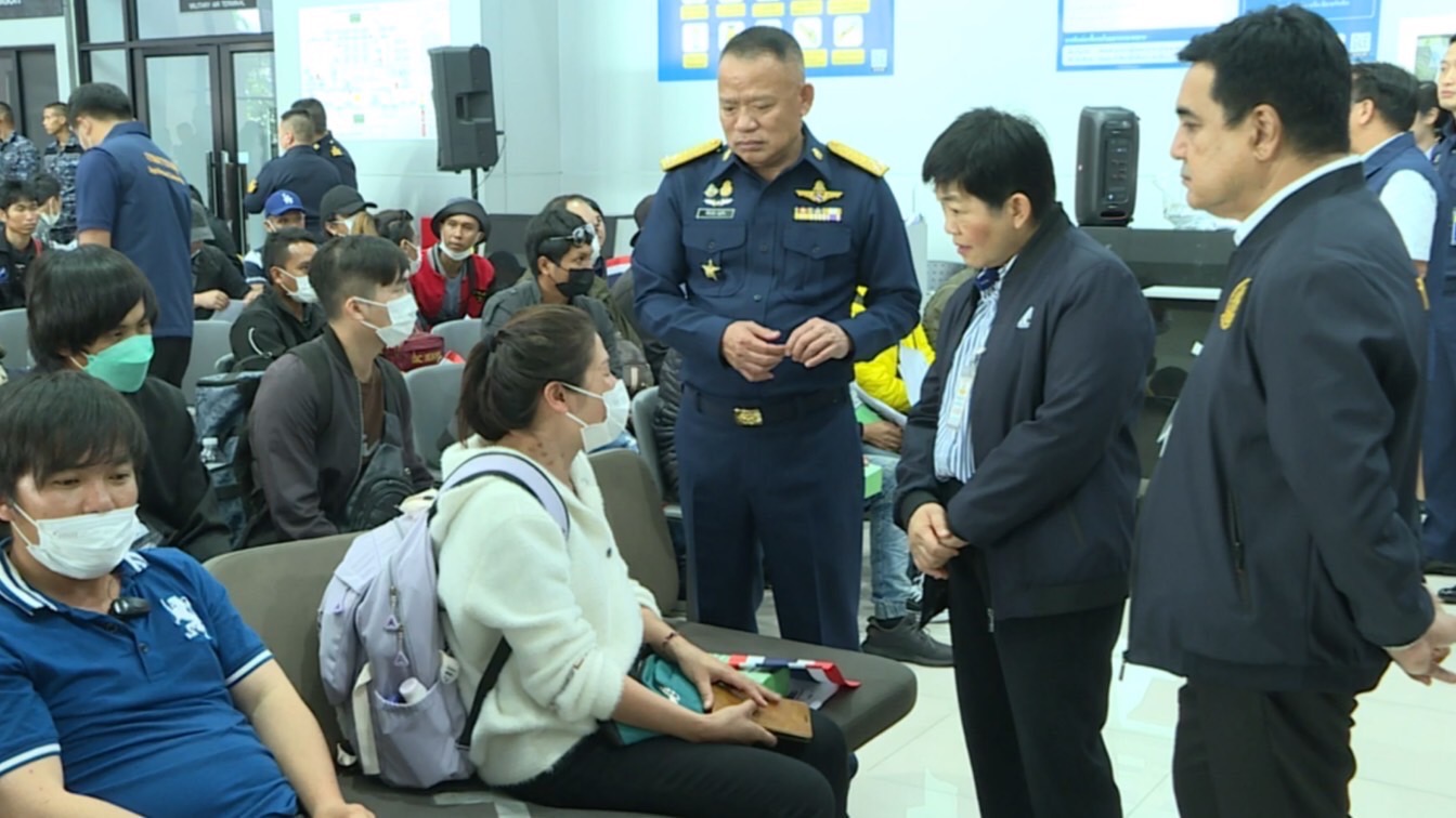 ผู้สื่อข่าวรายงานว่า หลังจากการตรวจสอบเอกสารตรวจผ่านเข้าเมืองแล้ว ได้มีหน่วยงานต่าง ๆ เข้ามาดูแล เช่น กระทรวงแรงงาน ดูแลเรื่องสิทธิประโยชน์ต่าง ๆ เช่น สมาชิกกองทุน เพื่อช่วยเหลือคนหางานไปทำงานในต่างประเทศ จะชี้แจงสิทธิ์ยื่นขอรับเงินสงเคราะห์จำนวน 15,000 บาท โดยสามารถยื่นได้ที่สำนักงานจัดหางานทุกจังหวัดและสำนักงานจัดหางานกรุงเทพมหานครพื้นที่ 1-10