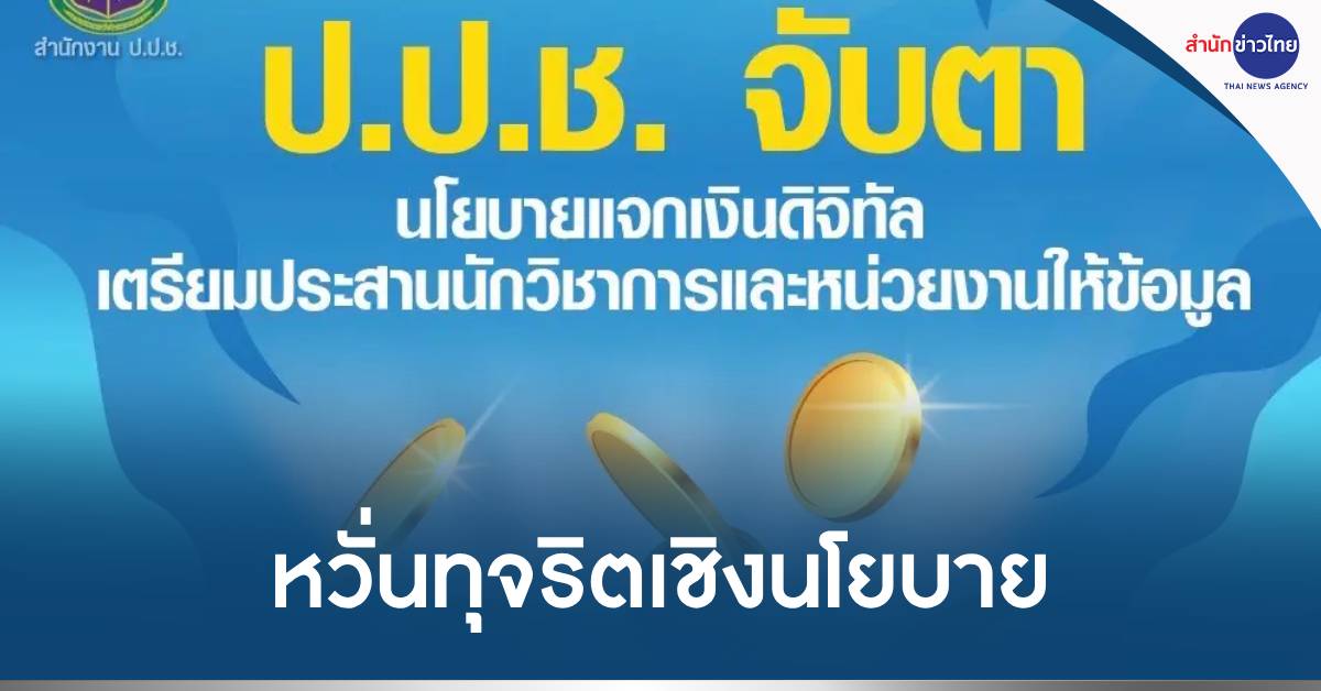 ป.ป.ช. 20 ต.ค.-ป.ป.ช. จับตาโครงการดิจิทัลวอลเล็ต หวั่นทุจริตเชิงนโยบาย จ่อเชิญนักวิชาการ-หน่วยงาน เข้าให้ข้อมูลร่วมศึกษา