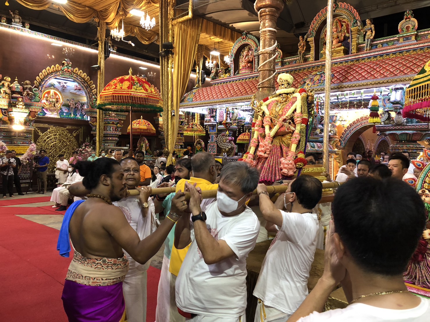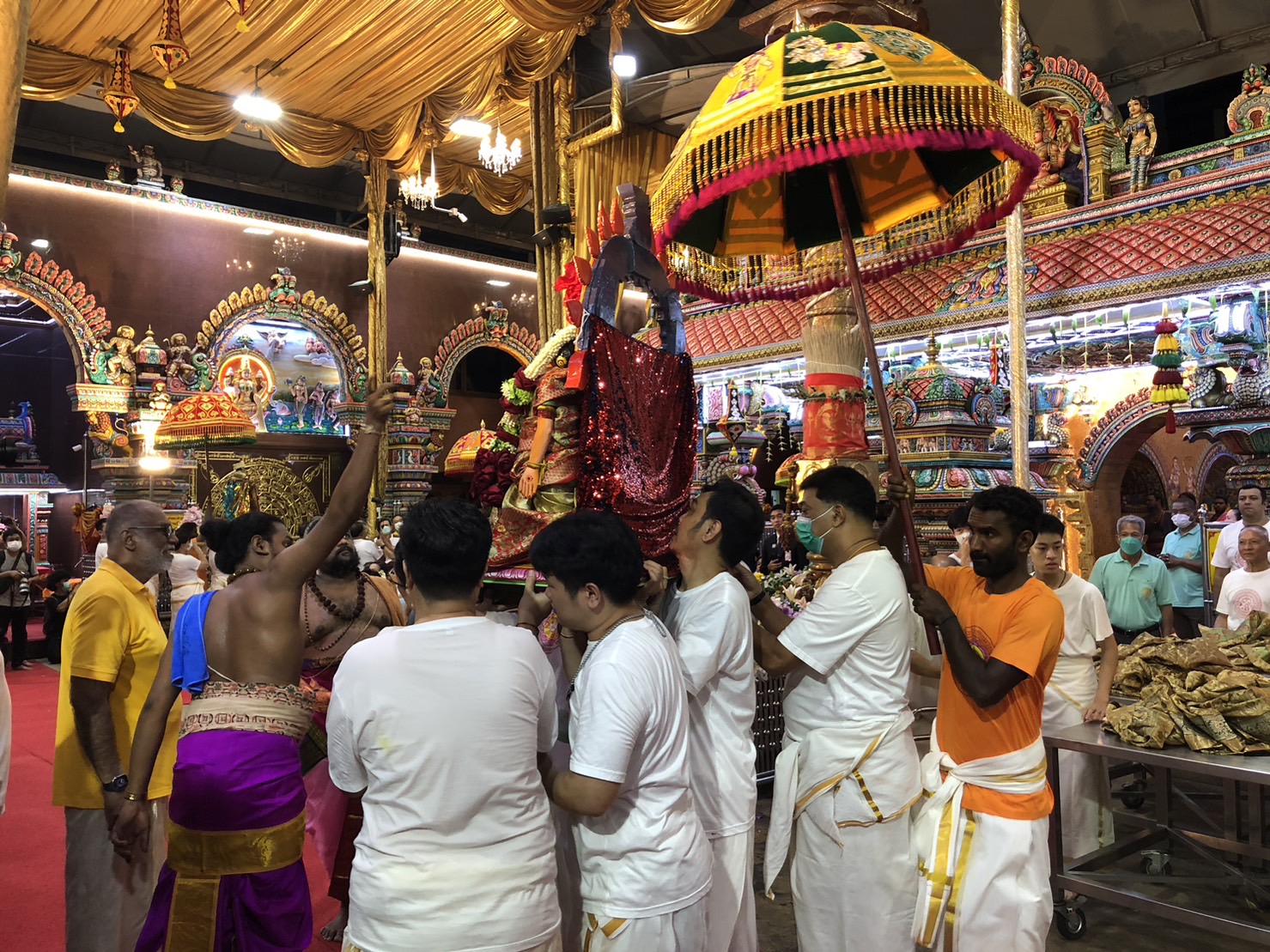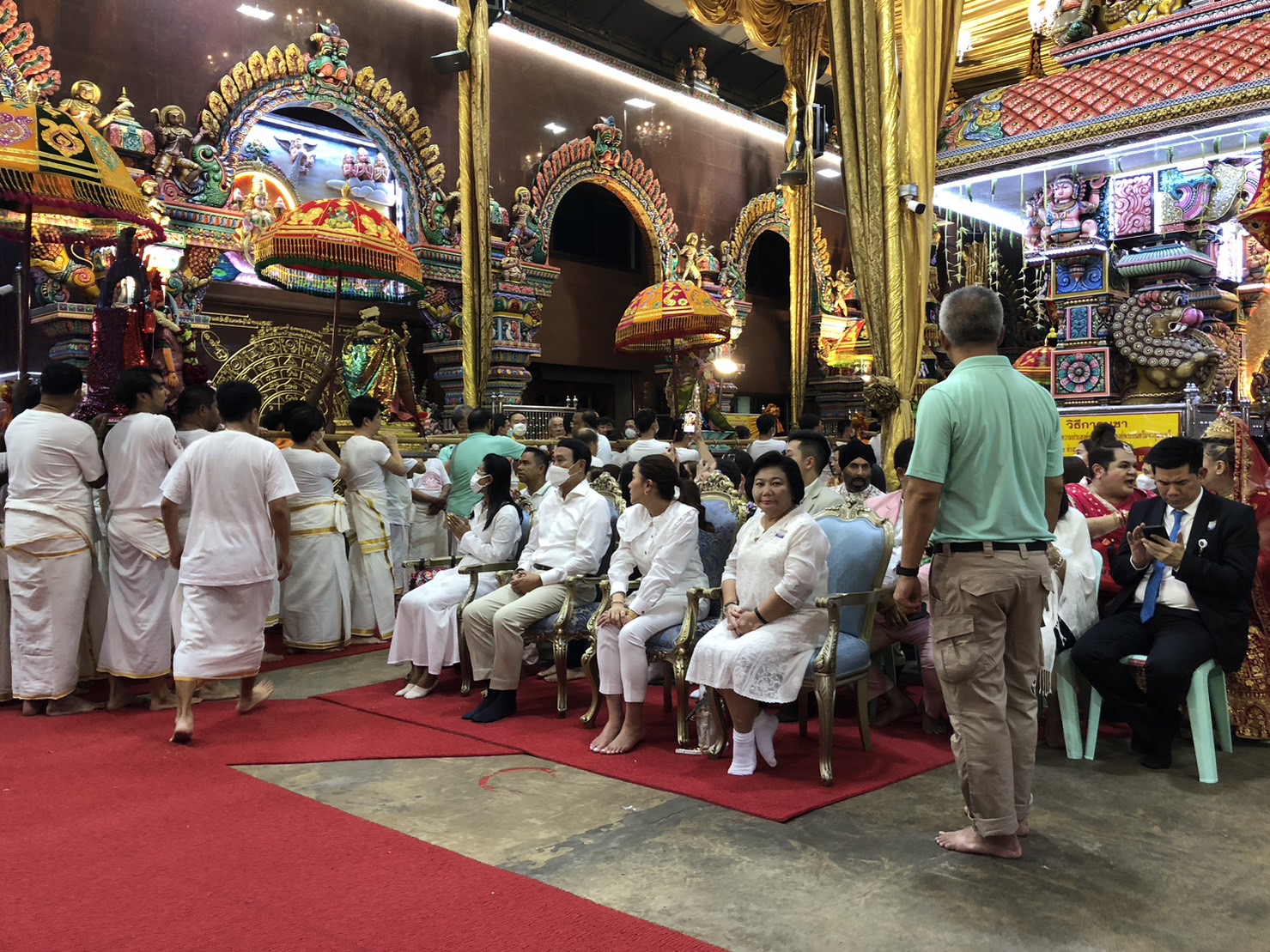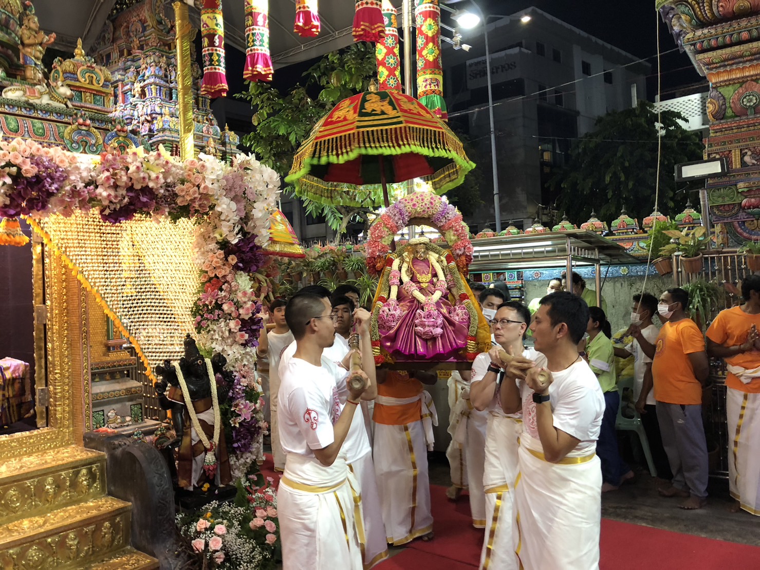 ผู้สื่อข่าวรายงานว่า ตลอดเส้นทางขบวนแห่ มีผู้ศรัทธามารอตั้งแต่ช่วงเย็น ทั้งจัดตั้งโต๊ะบูชา และสวมชุดส่าหรี มาร่วมพิธี. – สำนักข่าวไทย