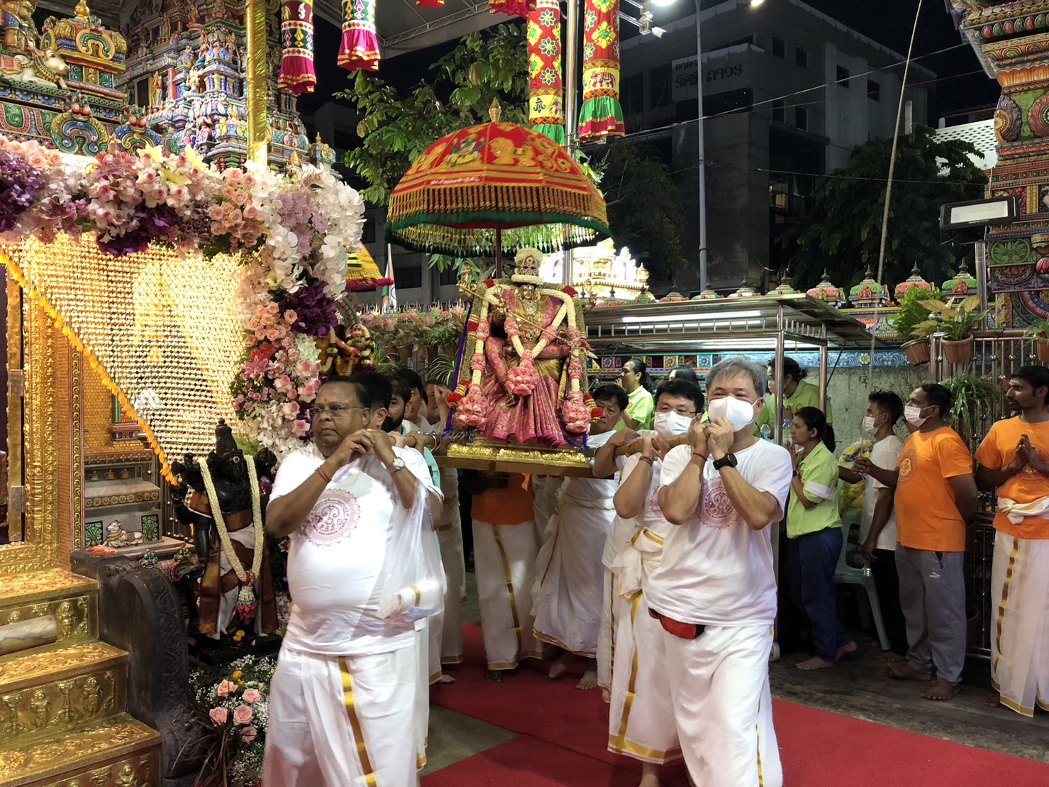 สำหรับในปี 2566 กำหนดการพิธีนวราตรี เริ่มตั้งแต่วันที่ 14-26 ตุลาคม 2566 โดยในวันอังคารที่ 24 ตุลาคม 2566 กำหนดให้มีงานแห่ประเพณี ขบวนเริ่มเคลื่อนออกจากโบสถ์ภายในขององค์แม่พระศรีมหาอุมาเทวี และแห่โดยรอบเทวสถาน 1 รอบ จากนั้นขบวนเข้าสู่ ถ.สีลม เพื่อให้พี่น้องประชาชนร่วมบูชา โดยตลอดขบวนมีพระมหาเทวี 3 พระองค์ ประดิษฐานอยู่ ประกอบด้วย องค์พระแม่ศรีมหาอุมาเทวีประทับกลางเป็นองค์ประธาน องค์พระแม่ศรีมหาลักษมีเทวีประทับด้านขวา และองค์พระแม่ศรีสรัสวดีเทวีประทับด้านซ้าย