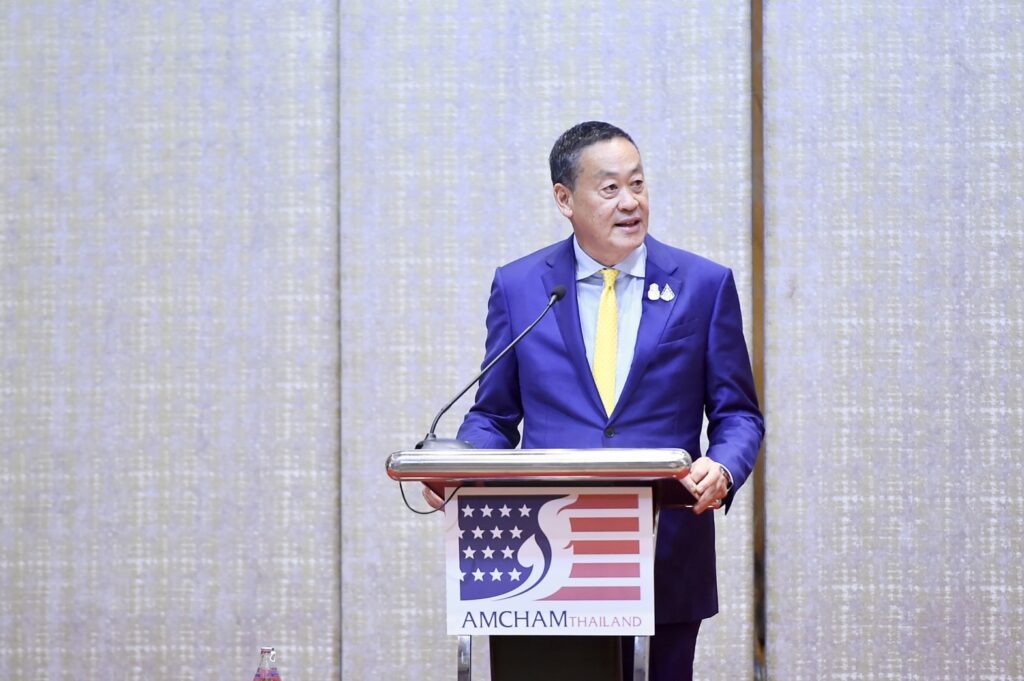 นายเศรษฐา ทวีสิน นายกรัฐมนตรีและรัฐมนตรีว่าการกระทรวงการคลัง เป็นกล่าวปาฐกถาพิเศษในงานประชุมสามัญประจำปีของคณะนักธุรกิจจากหอการค้าอเมริกันในประเทศไทย (AMCHAM’s Annual General Meeting) ภายใต้หัวข้อ “Thailand’s Trajectory : The Future is Bright”
