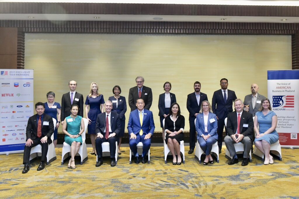 นายกรัฐมนตรี กล่าวว่า ในปีนี้ ไทยและสหรัฐฯ เฉลิมฉลองครบรอบ 190 ปีความสัมพันธ์ทางการทูต ซึ่งขอให้ทั้งสองฝ่ายแลกเปลี่ยนความคิดเห็นร่วมกันเพื่อผลประโยชน์และความเจริญรุ่งเรืองของประชาชนของเรา โดยนายกรัฐมนตรีได้กล่าวถึงวลี “Trade flies the flag” สะท้อนความสัมพันธ์ไทย – สหรัฐฯ ที่เน้นการค้าเป็นหลัก ตั้งแต่เริ่มก่อตั้ง ซึ่งเป็นเวลาเกือบสองศตวรรษ นับตั้งแต่สนธิสัญญาไมตรีและพาณิชย์ ค.ศ. 1833 จวบจนปัจจุบัน ความสัมพันธ์ทางเศรษฐกิจของทั้งสองประเทศยังคงแข็งแกร่งและเจริญรุ่งเรือง โดย AMCHAM สามารถทำหน้าที่เป็นตัวแทนของการเปลี่ยนแปลงที่สำคัญเพื่อเชื่อมโยงทางเศรษฐกิจให้มากขึ้น โดยทุกคนสามารถมีบทบาทที่สร้างสรรค์ในฐานะ “ทูตการค้า” ช่วยเหลือผู้อื่นในด้านการค้า การลงทุน ตลอดจนเสนอแนะวิธีการสร้างความร่วมมือใหม่ ๆ
