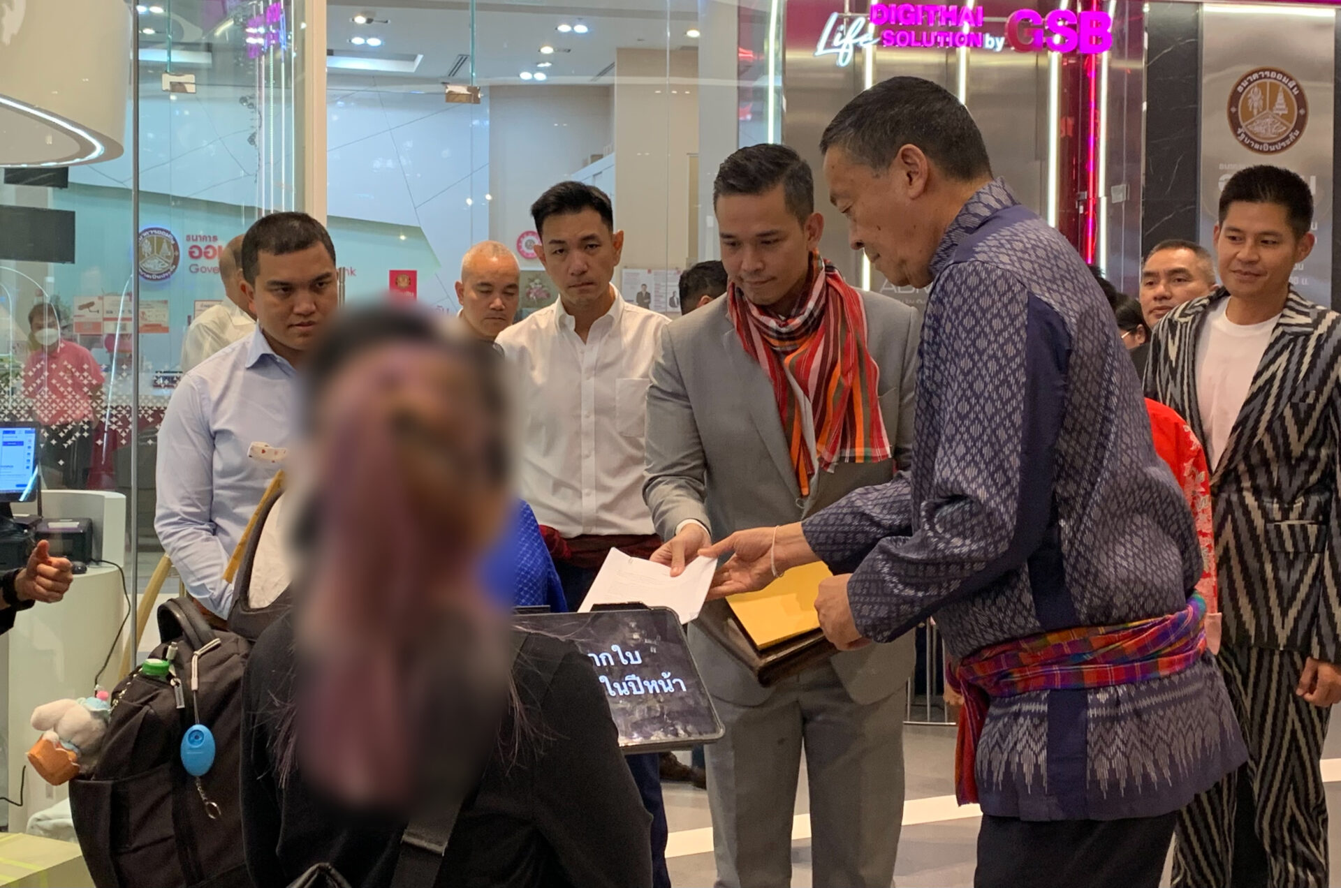 จากนั้น นายเศรษฐา เดินขึ้นชั้น 5 หน้าโรงภาพยนตร์พารากอน ซีนีเพล็กซ์ ศูนย์การค้าสยามพารากอน เพื่อร่วมถ่ายภาพกับรัฐมนตรี รวมถึงนักแสดงและผู้อำนวยการสร้างภาพยนตร์ “สัปเหร่อ” โดยระหว่างที่ร่วมกันถ่ายภาพหมู่ “หยก” ได้พยายามเดินแทรกตัวเข้ามาในกลุ่มสื่อมวลชน เพื่อชูไอแพดที่เขียนข้อความดังกล่าวให้สื่อมวลชนและประชาชนที่มารอชมภาพยนตร์ได้เห็นอีกครั้ง แต่ไม่ได้รับความสนใจใดๆ ซึ่งทีมรักษาความปลอดภัยของนายกฯ พยายามเข้าไปพูดคุยกับ “หยก” เพื่อขอความร่วมมือให้หยุดเท่านี้ เนื่องจากนายกฯ ได้รับหนังสือร้องเรียนไปแล้ว. – สำนักข่าวไทย