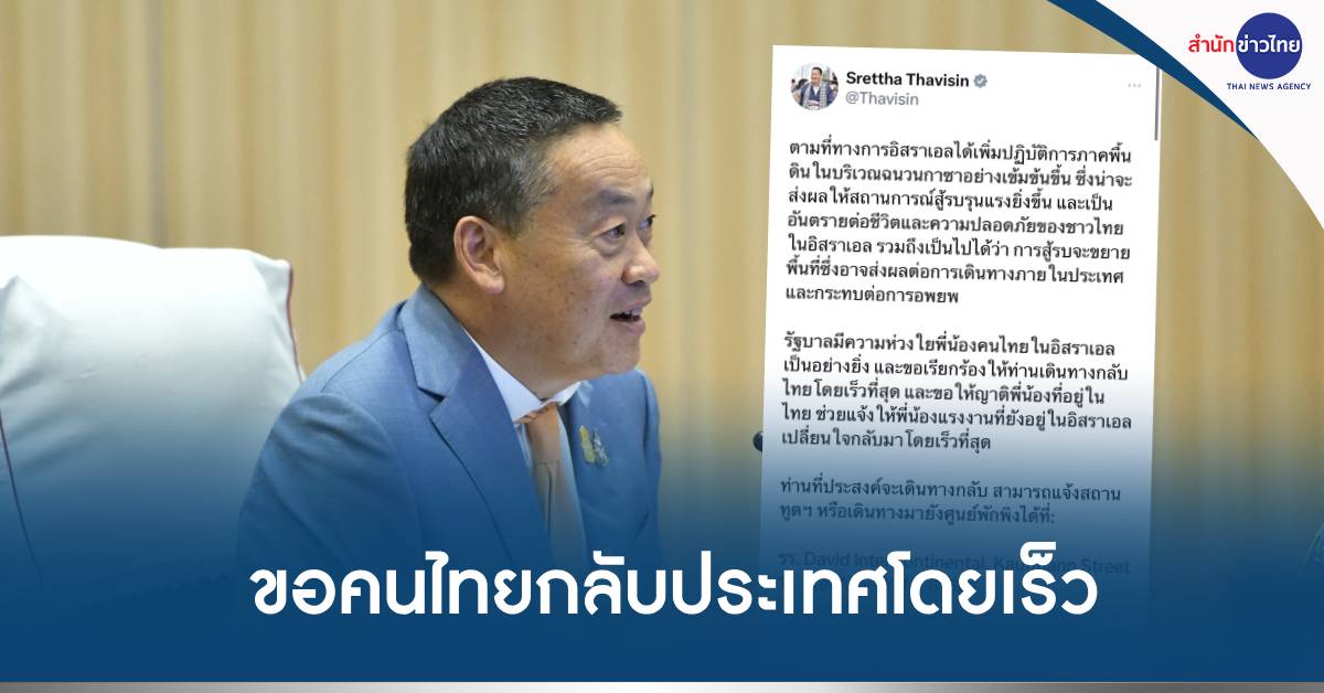 ทำเนียบ 28 ต.ค.-ด่วน! โฆษกรัฐบาลเผย นายกฯ สั่งการให้ประชาสัมพันธ์เตือนให้พี่น้องคนไทยในอิสราเอลเดินทางกลับประเทศโดยเร็วที่สุด และสั่งการให้หน่วยงานที่เกี่ยวข้องดูแลและหาช่องทางทำงานให้แรงงานที่เดินกลับมาโดยเร็ว