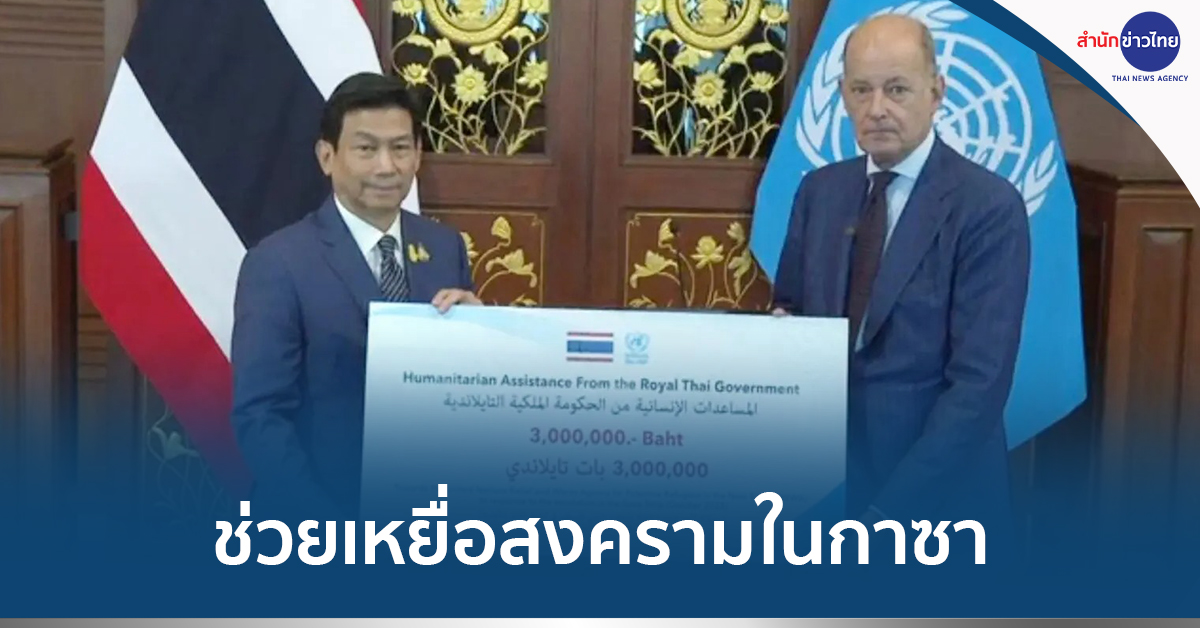 กระทรวงการต่างประเทศ 3 พ.ย.-รมว.กต.มอบเงินในนามรัฐบาลไทยให้ UN 3 ล้าน ช่วยผู้ได้รับผลกระทบในกาซา พร้อมแสดงความเสียใจกรณีสูญเสียเจ้าหน้าที่ที่เข้าไปปฏิบัติหน้าที่