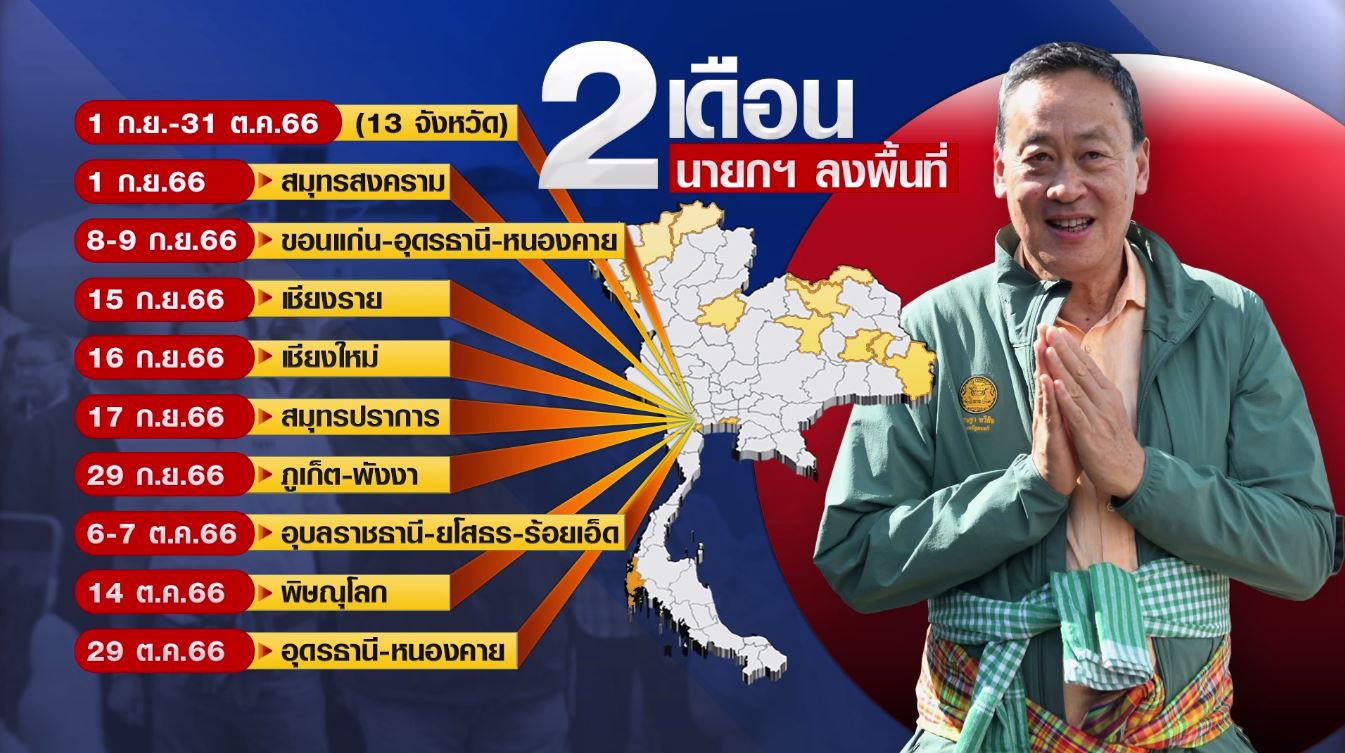 กรุงเทพฯ 8 พ.ย. – หลังรัฐบาลที่นำโดยนายเศรษฐา ทวีสิน แถลงนโยบายต่อรัฐสภา ได้เดินหน้าทำงานอย่างไม่เหน็ดเหนื่อย ช่วง 2 เดือนที่ผ่านมา นอกจากเดินทางปฏิบัติภารกิจที่ต่างประเทศแล้ว ยังลงพื้นที่มากกว่า 10 จังหวัด. – สำนักข่าวไทย