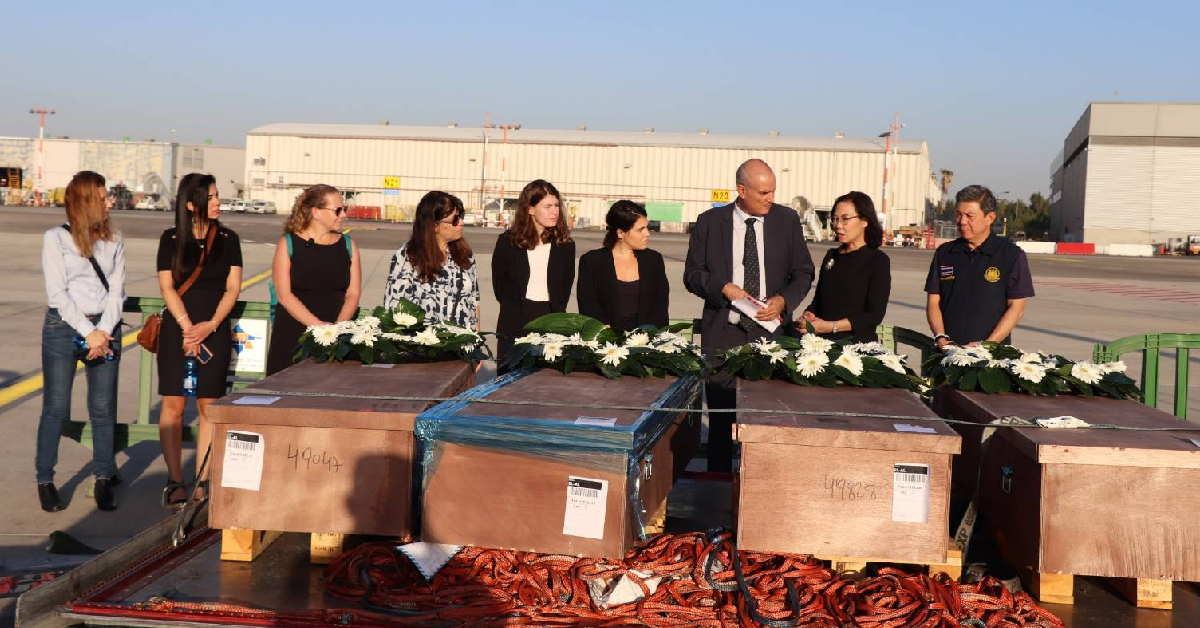 กระทรวงการต่างประเทศ ขอนำส่งประมวลภาพพิธีการส่งร่างผู้เสียชีวิต ครั้งที่ 4 จำนวน 8 ราย เมื่อวันที่ 8 พฤศจิกายน 2566 เวลา 15.30 น. (เวลาท้องถิ่นของอิสราเอล) โดยนางสาวพรรณนภา จันทรารมย์ เอกอัครราชทูต ณ กรุงเทลอาวีฟ และนายศักดินาถ สนธิศักดิ์โยธิน ผู้ตรวจราชการกรม สำนักงานประกันสังคม เป็นผู้แทนฝ่ายไทย เข้าร่วมพิธีไว้อาลัย ณ บริเวณลานบินของท่าอากาศยานเบนกูเรียน กรุงเทลอาวีฟ