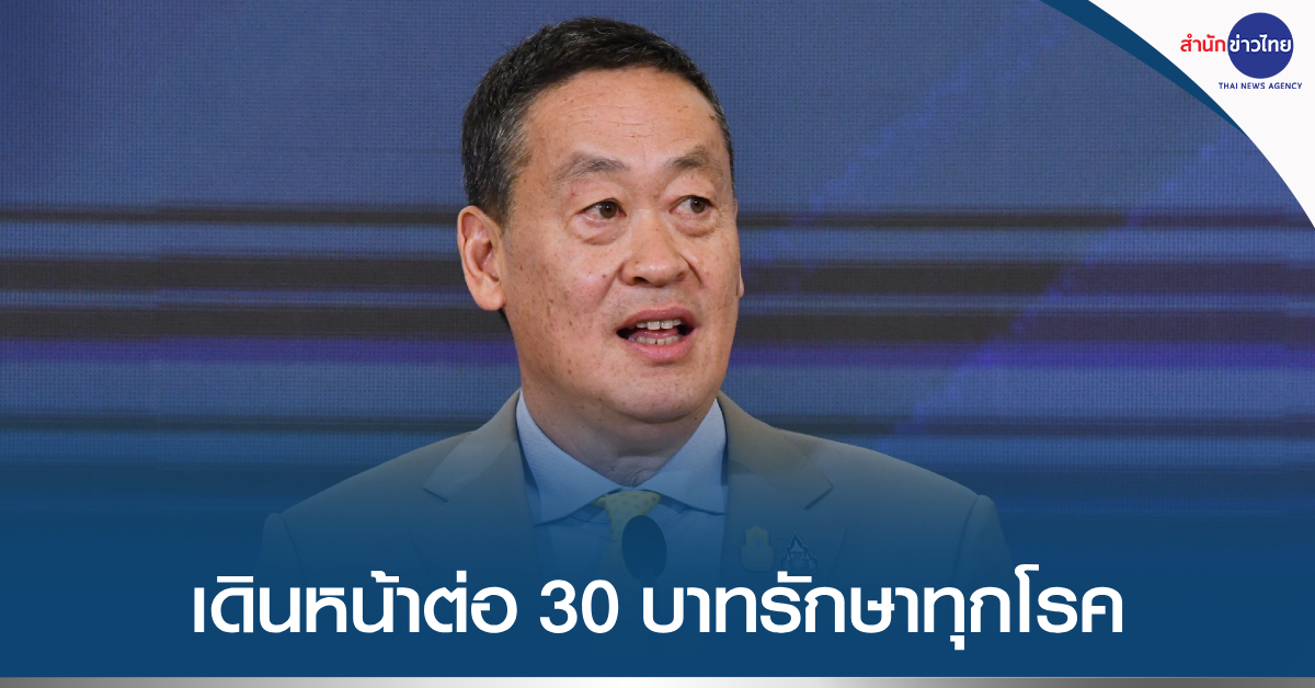 กรุงเทพฯ 12 พ.ย. – นายกฯ ยืนยันรัฐบาลเดินหน้าต่อ 30 บาทรักษาทุกโรค ยกระดับเพื่อชีวิตความเป็นอยู่ที่ดีกว่าของคนไทยทุกคน