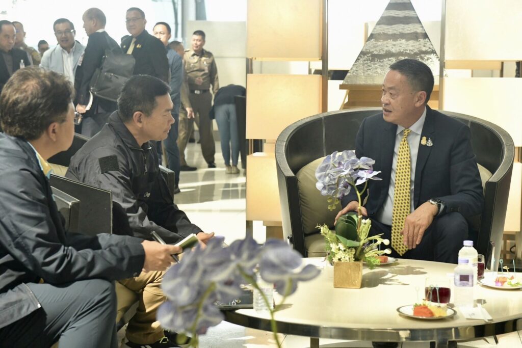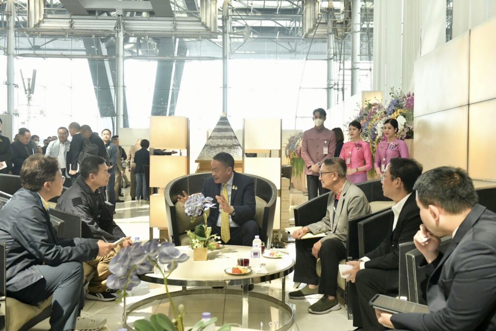 สุวรรณภูมิ 12 พ.ย. – นายกรัฐมนตรี ฟิต นั่งหัวโต๊ะถกปัญหาส่วยทางหลวง หมูเถื่อน ความปลอดภัยนักท่องเที่ยว ฉุนสั่งการเรื่องหมูเถื่อนแล้วไม่ทำ ก่อนบินร่วมประชุมเอเปค ครั้งที่ 30