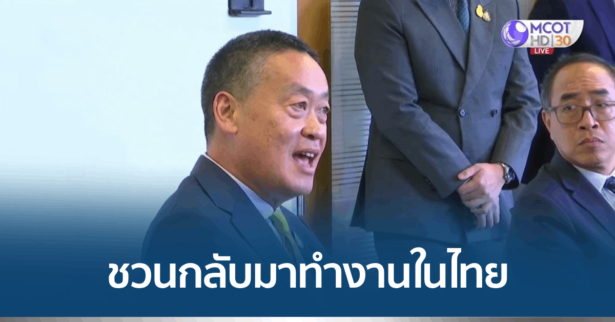นายกฯ บอกว่าได้ใช้โอกาส การเดินทางมาร่วมประชุมเอเปค เชิญนักลงทุนต่างประเทศ หลายรายมาหารือ และเตรียมลงนาม MOU ในอนาคต จะมีบริษัทดี ๆ หลายแห่ง ไปขยายงานที่เมืองไทย ซึ่งจะรองรับนักศึกษาไทยในต่างประเทศ ให้กลับไปทำงานที่บ้านเกิด ยืนยัน รัฐบาลตั้งใจจริง ที่จะทำให้เกิดการลงทุนครั้งมโหฬาร เพื่อสร้างโอกาสสร้างงานให้นักศึกษาไทยในต่างประเทศกลับไปเป็นกำลังสำคัญของชาติ ไปมีอนาคตที่ดีในเมืองไทย .-สำนักข่าวไทย