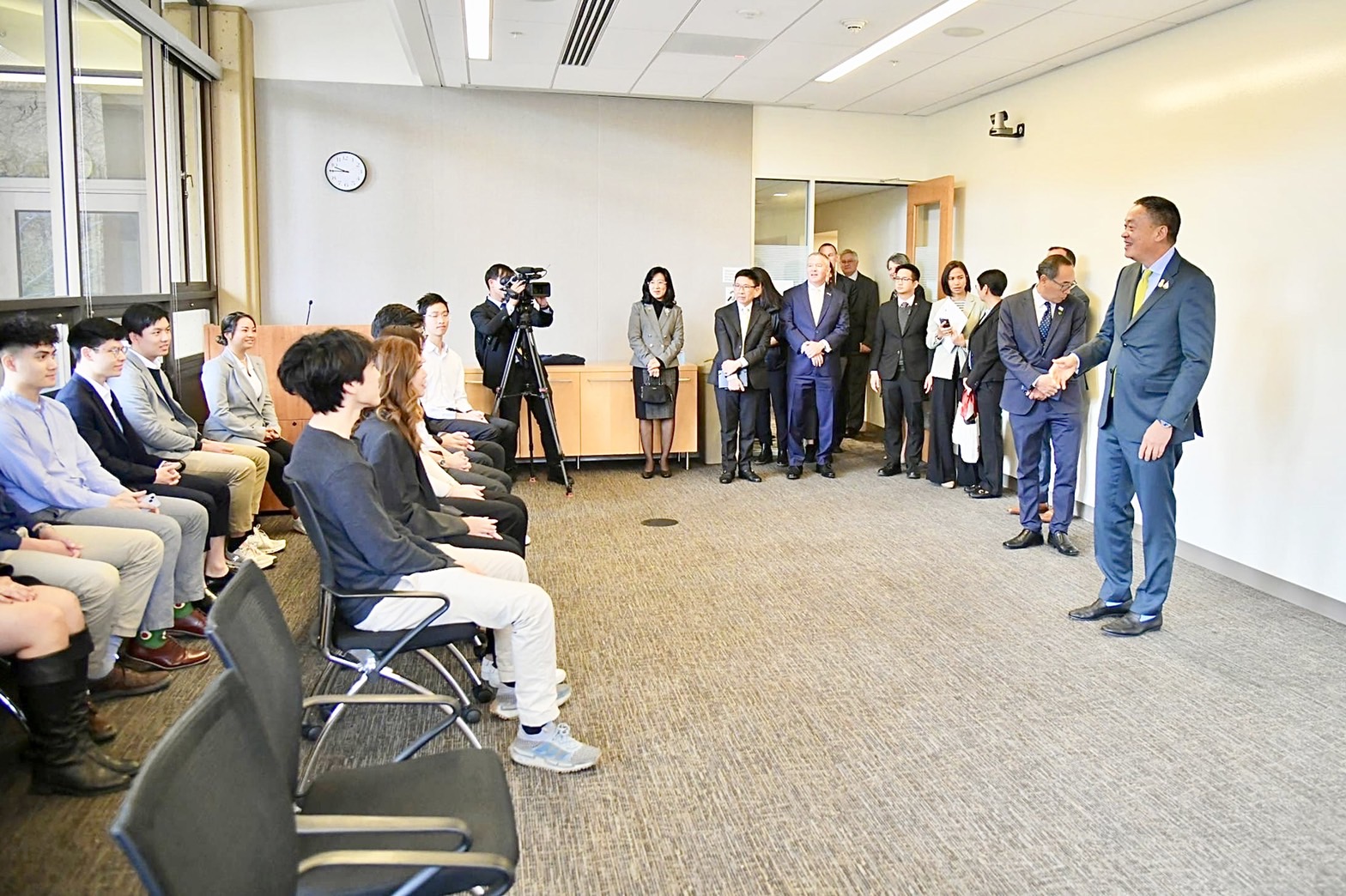 นายกรัฐมนตรี กล่าวถึงการพบกับนักศึกษาไทยในมหาวิทยาลัยสแตนเฟิร์ด ว่า ส่วนใหญ่เป็นนักศึกษาระดับปริญญาตรี เป็นนักศึกษาระดับท็อปหรือ ระดับมันสมองของประเทศ แต่ส่วนมากบอกว่าหลังสำเร็จการศึกษาแล้วจะหาประสบการณ์ การทำงานในต่างประเทศก่อน ซึ่งถือเป็นสิ่งที่ดี แต่ทำให้มีความกังวลว่าคนเหล่านี้จะกลับไปทำงานที่ประเทศไทยหรือไม่ จึงเป็นหน้าที่ของนายกรัฐมนตรี ที่จะทำให้นักศึกษาเหล่านี้มีความสบายใจว่าเมื่อกลับประเทศแล้วจะมีงานที่เหมาะสม มีหน้าที่การงานที่ดี เป็นอนาคตที่ดีของประเทศต่อไป