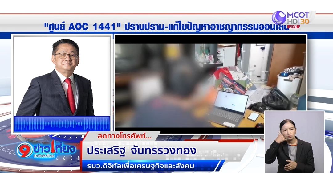 อสมท 15 พ.ย. – รัฐบาลเร่งแก้ปัญหาการหลอกลวงออนไลน์ ที่มีหลากหลายรูปแบบ มีการเปิดศูนย์ปฏิบัติการแก้ไขปัญหาอาชญากรรมออนไลน์ (Anti Online Scam Operation Center ) หรือ AOC แก้ปัญหา One Stop Service ให้กับประชาชนที่เดือดร้อน ขณะนี้ เปิดดำเนินงานกว่า 2 สัปดาห์ ได้ช่วยผู้เสียหายอย่างไรบ้าง พูดคุยกับคุณประเสริฐ จันทรรวงทอง รัฐมนตรีว่าการกระทรวงดิจิทัลเพื่อเศรษฐกิจและสังคม .-สำนักข่าวไทย