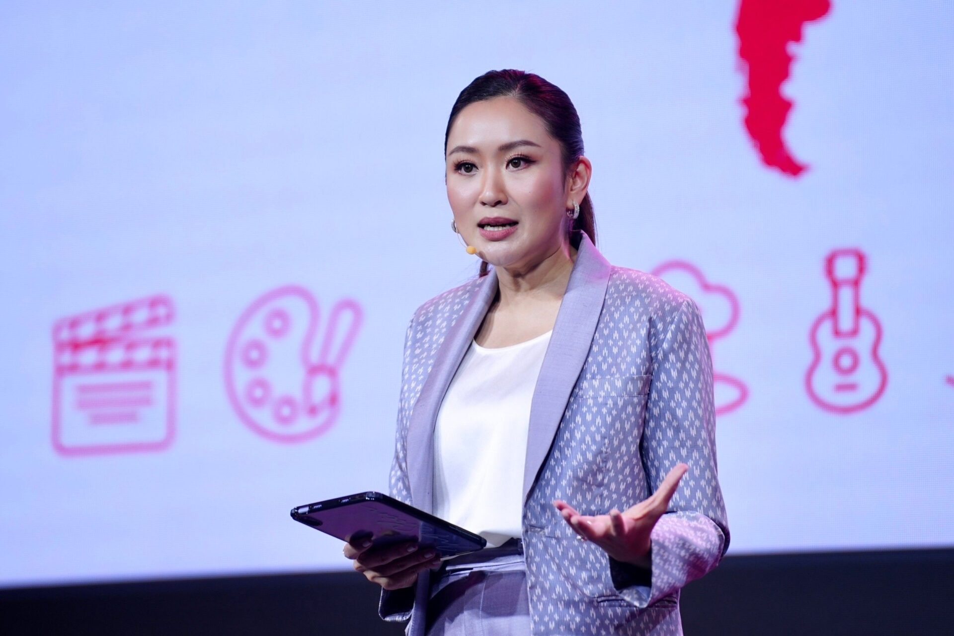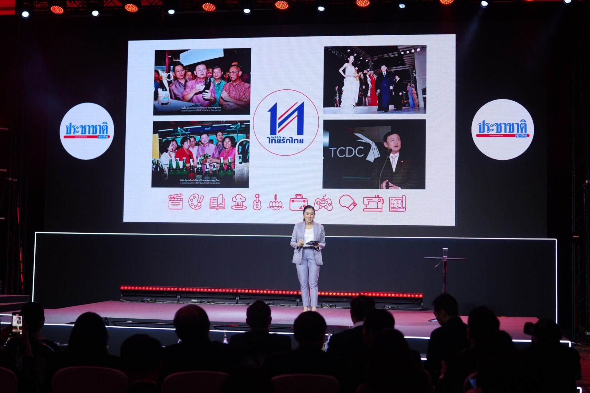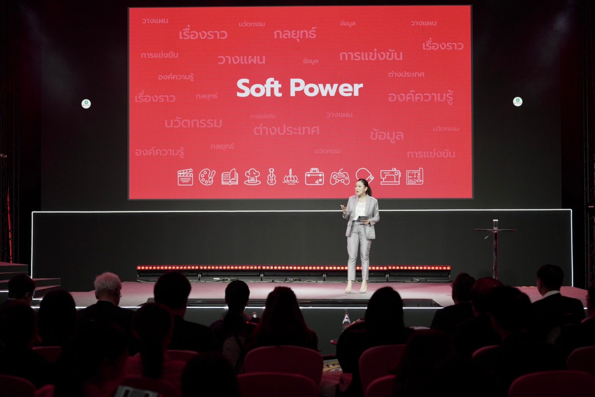 น.ส.แพทองธาร ชินวัตร หัวหน้าพรรคเพื่อไทย ในฐานะรองประธานคณะกรรมการยุทธศาสตร์ซอฟต์พาวเวอร์แห่งชาติ กล่าวในการบรรยายพิเศษ ‘Soft Power The Great Challenger’ ในการสัมมนา ‘THAILAND 2024 : beyond RED OCEAN เส้นทางใหม่ เป้าหมายใหม่ ที่มั่นคง’ จัดขึ้นโดย ประชาชาติธุรกิจและประชาชาติธุรกิจออนไลน์ โดยมีนางพวงเพ็ชร ชุนละเอียด รัฐมนตรีประจำสำนักนายรัฐมนตรี นพ.สุรพงษ์ สืบวงศ์ลี กรรมการและเลขานุการคณะกรรมการยุทธศาสตร์ซอฟต์พาวเวอร์แห่งชาติ รวมถึงนักธุรกิจและภาคเอกชนชั้นนำ และประชาชนที่สนใจเข้าร่วมรับฟัง