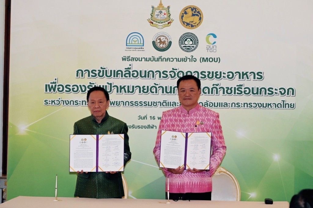 นายอนุทิน ชาญวีรกูล รองนายกรัฐมนตรีและรัฐมนตรีว่าการกระทรวงมหาดไทย พร้อมด้วยพล.ต.อ.พัชรวาท วงษ์สุวรรณ รองนายกรัฐมนตรีและรัฐมนตรีว่าการกระทรวงทรัพยากรธรรมชาติและสิ่งแวดล้อม ร่วมลงนามบันทึกข้อตกลงความร่วมมือการขับเคลื่อนการจัดการขยะอาหารเพื่อรองรับเป้าหมายด้านการลดก๊าซเรือนกระจกระหว่างกระทรวงทรัพยากรธรรมชาติและสิ่งแวดล้อมและกระทรวงมหาดไทย โดยนายอนุทิน กล่าวว่า กระทรวงมหาดไทยในฐานะหน่วยงานที่มีภารกิจหน้าที่ในการบำบัดทุกข์ บำรุงสุขพี่น้องประชาชน และทำให้พี่น้องประชาชนมีความอุดมสมบูรณ์พูนสุขโดยถ้วนหน้า มุ่งเน้นแก้ไขปัญหาการบริหารจัดการขยะให้สอดคล้องกับแนวคิดการพัฒนาที่ยั่งยืนและแนวคิดเศรษฐกิจหมุนเวียน