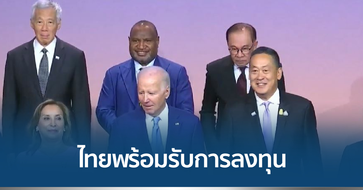 17 พ.ย. – นายเศรษฐา ทวีสิน นายกรัฐมนตรี ถ่ายภาพร่วมผู้นำเขตเศรษฐกิจเอเปค เคียงข้างประธานาธิบดีโจ ไบเดน ของสหรัฐ พร้อมทักทายประธานาธิบดีสี จิ้นผิง ของจีน ย้ำประเทศไทยเปิดแล้วพร้อมรับการลงทุน.-สำนักข่าวไทย