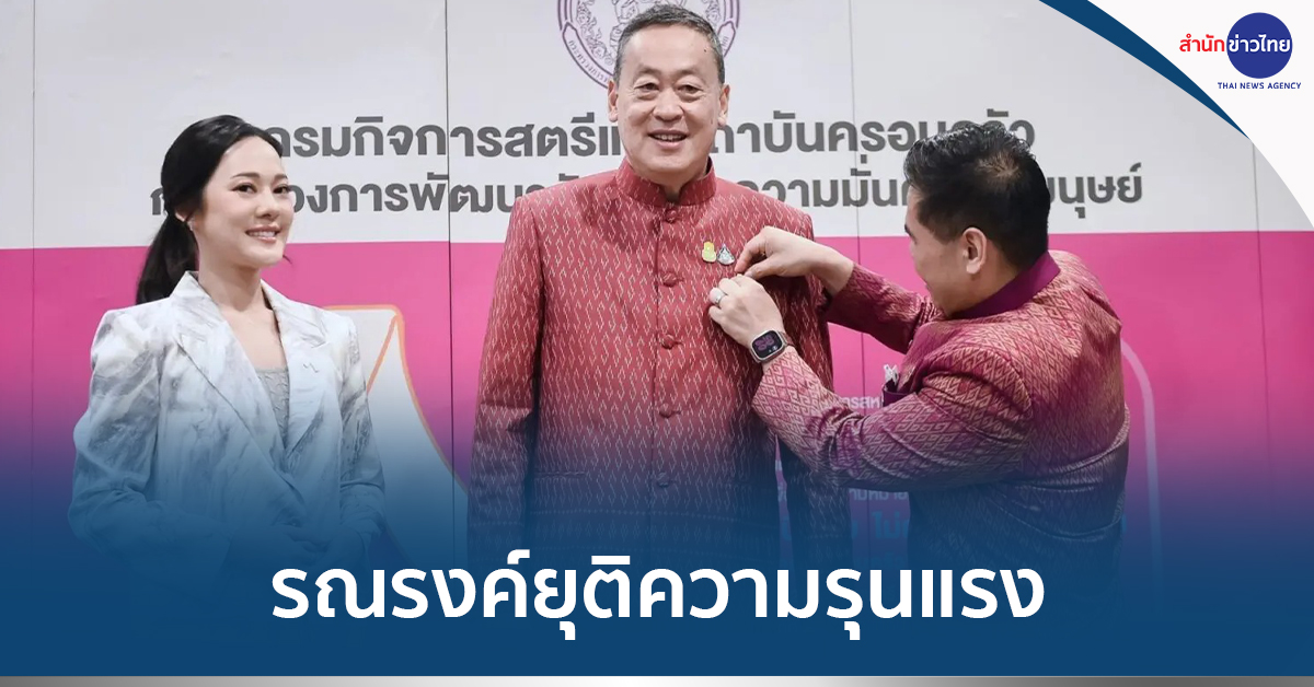ทำเนียบ 21 พ.ย.- “วราวุธ” นำทีมติดเข็มกลัดริบบิ้นสีขาวให้นายกรัฐมนตรี และคณะรัฐมนตรี รณรงค์ยุติความรุนแรงต่อเด็ก สตรี และบุคคลในครอบครัว