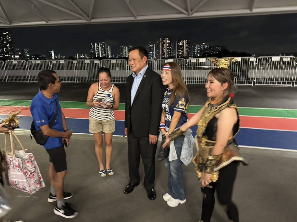 นายอนุทิน ขอบคุณแฟนบอล ที่เดินทางมาไกล เป็นกำลังใจให้ทีมชาติ พร้อมถ่ายภาพร่วมกัน ยินดีในชัยชนะของทีมฟุตบอลไทย .-สำนักข่าวไทย