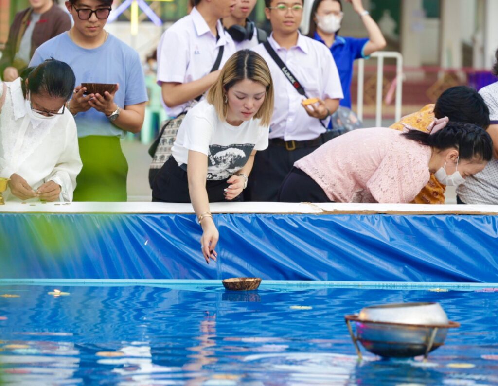 โดยกระทงที่ใช้ทำมาจากกะลามะพร้าวและเทียน ลอยที่สระน้ำของวัดประยูรฯ ที่จัดทำขึ้นมาโดยเฉพาะเพื่อไม่ให้ทำลายสิ่งแวดล้อม