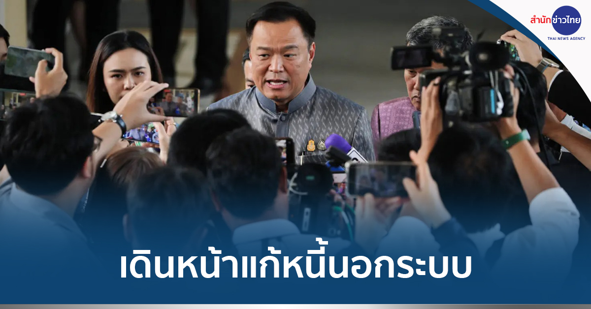 ทำเนียบรัฐบาล 28 พ.ย.-“อนุทิน” ระบุรัฐบาลนำหลายหน่วยงานร่วมแก้หนี้นอกระบบ ขณะที่มหาดไทยเปิดศูนย์รับขึ้นทะเบียนลูกหนี้ผ่านออนไลน์ ย้ำสบายใจได้เก็บข้อมูลเป็นความลับ ใครข่มเหง ปชช. เข้ามาตรการปราบผู้อิทธิพล