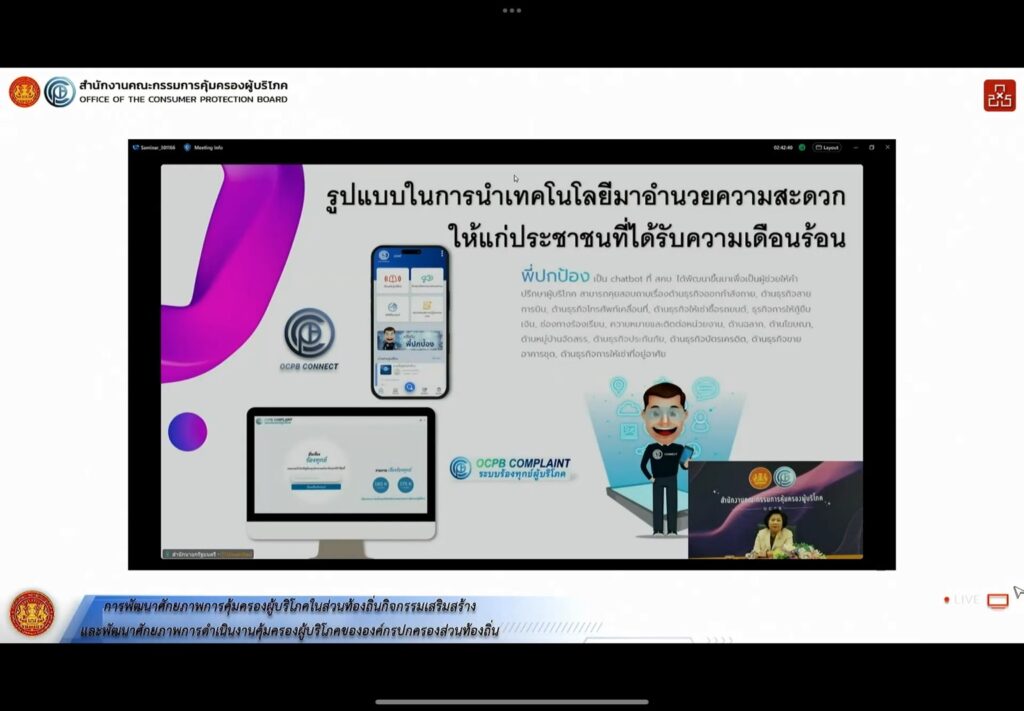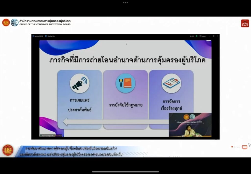 นางพวงเพ็ชร ชุนละเอียด รัฐมนตรีประจำสำนักนายกรัฐมนตรี ในฐานะประธานกรรมการคุ้มครองผู้บริโภค เป็นประธานเปิดโครงการพัฒนาศักยภาพการคุ้มครองผู้บริโภคในส่วนท้องถิ่น ในกิจกรรมเสริมสร้างและพัฒนาศักยภาพการดำเนินงานคุ้มครองผู้บริโภคขององค์กรปกครองส่วนท้องถิ่น (รูปแบบออนไลน์) โดยมี นายกฤช เอื้อวงศ์ ที่ปรึกษารัฐมนตรีประจำสำนักนายกรัฐมนตรี นายธสรณ์อัฑฒ์ ธนิทธิพันธ์ เลขาธิการสำนักงานคณะกรรมการคุ้มครองผู้บริโภค (สคบ.) คณะเจ้าหน้าที่ สคบ. และผู้เข้ารับการอบรมจากเทศบาลและองค์การบริหารส่วนตำบลทั่วประเทศ กว่า 7,000 แห่ง จำนวนกว่า 30,000 คน เข้าร่วมผ่านระบบออนไลน์
